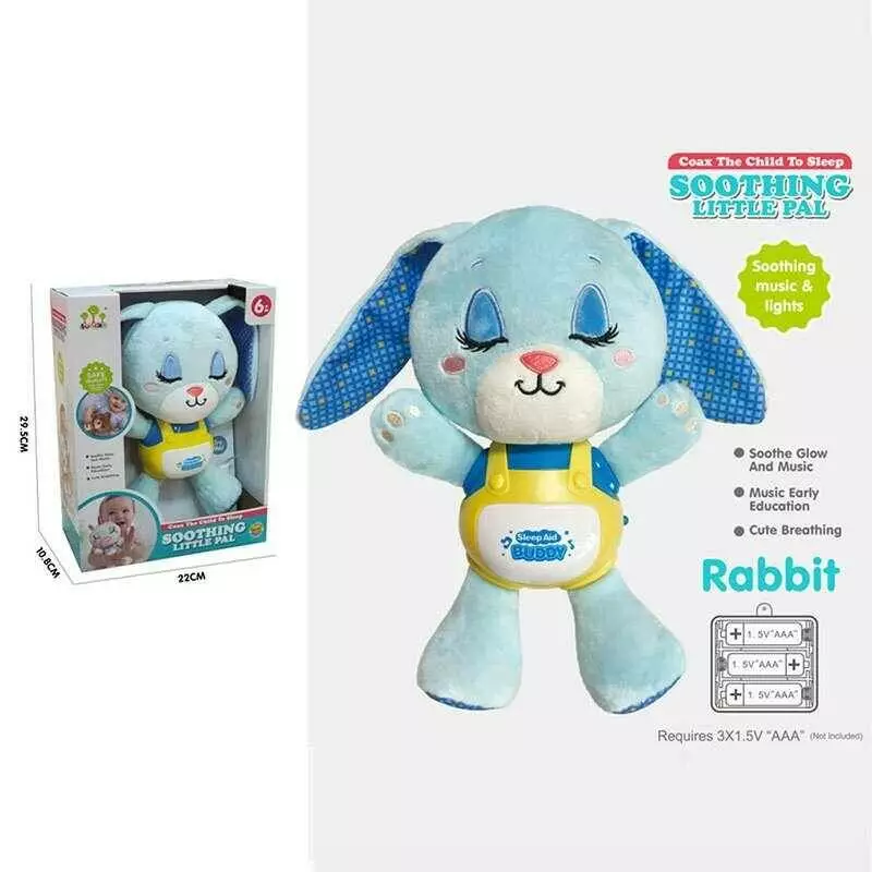 Музичне брязкальце SL 88055 (24/2) "Кролик", на батарейках, мелодії, звук дихання, підсвічування, шелесткі елементи, в коробці