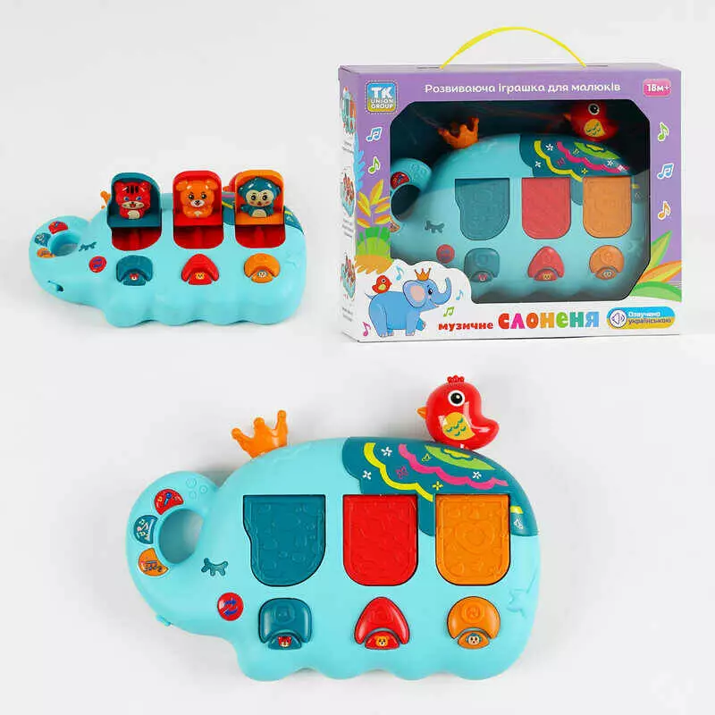 Головна > Каталог > Іграшки > Розвиваючі іграшки > Музичне слоненя TK - 01052 (24) "TK Group", ОЗВУЧУВАННЯ УКРАЇНСЬКОЮ МОВОЮ, пісні, мелодії, казки, віршики, на батарейках, в коробці оптом