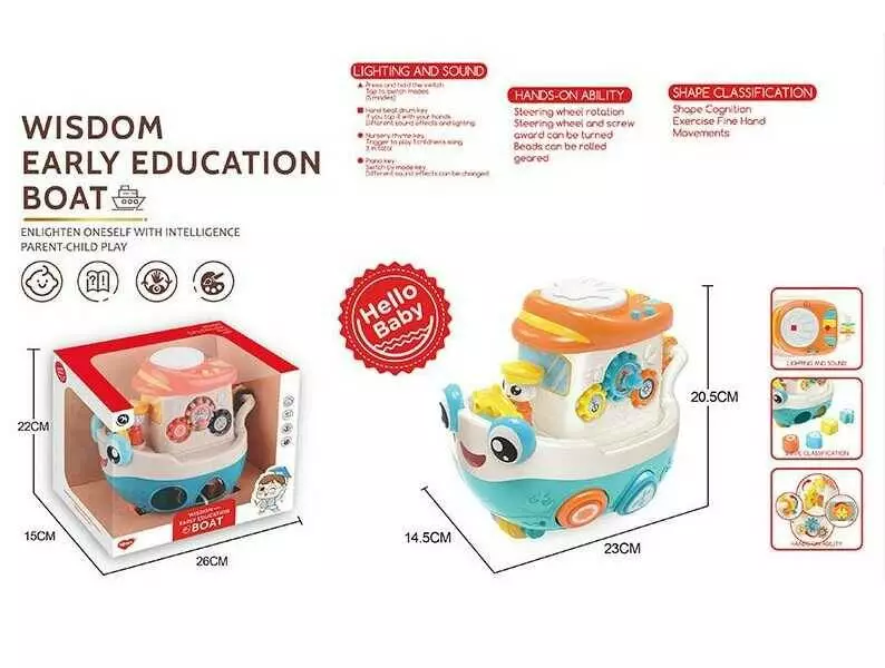 Музичний човен BM 1205 (24/2) пискавка, тріскачка, рухомі шестерні, сортер, звуки, світло, піаніно, ноти, мелодії, в коробці