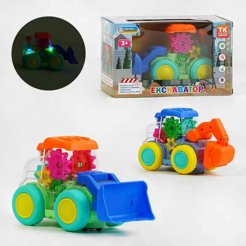 Музичний екскаватор ТК 11301 (36) "TK Group", 2 кольори, ОЗВУЧ. УКРАЇНСЬКОЮ МОВОЮ, пісня, підсвічування, колесо вільного ходу, шестерні, в коробці