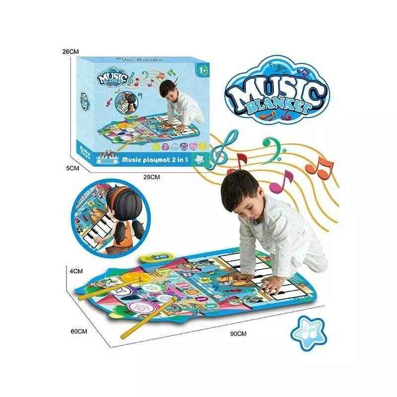 Музичний килимок YYD-04 (60) 2 в 1, піаніно, барабани, музика, музичні інструменти, запис та відтворення, в коробці
