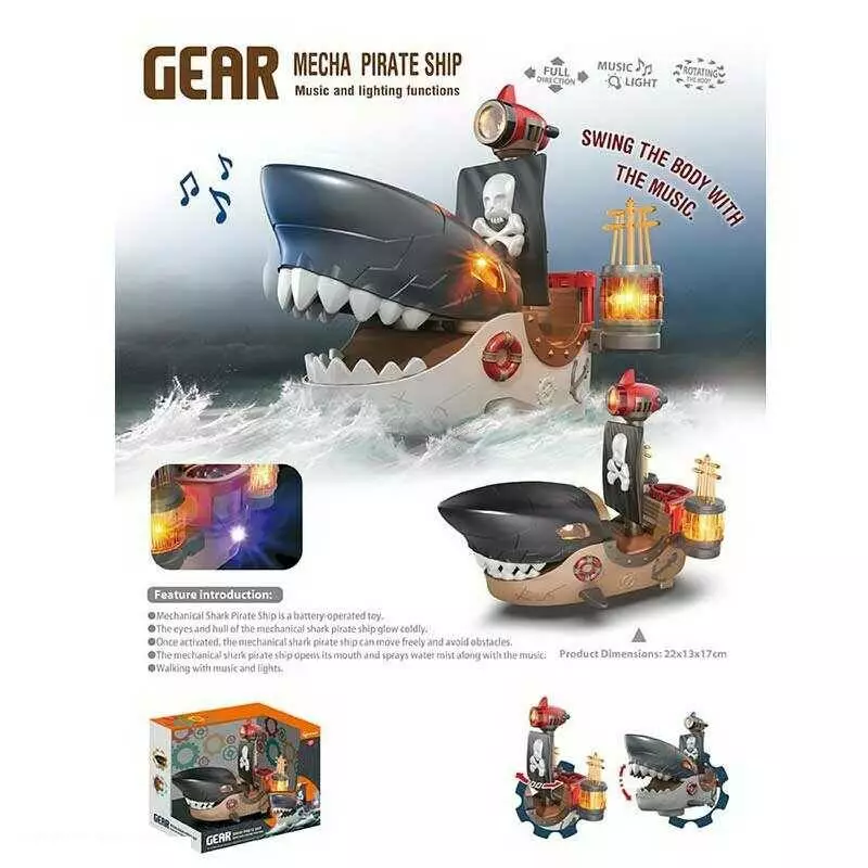 Музичний корабель SA 3 A (48) на батарейках, звук, підсвітка, рухається, відкривається рот, в коробці