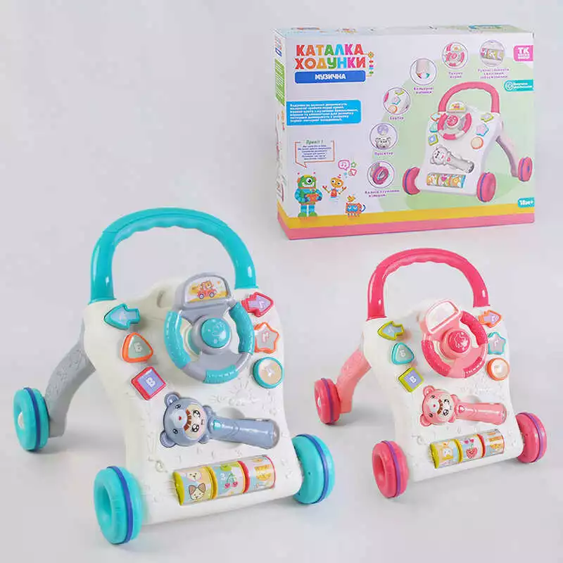 Головна > Каталог > Дитячі товари > Дитячі розвиваючі килимки > Музичні ходунки-каталка 61925 (12/2) "TK Group", 2 кольори, ОЗВУЧ. УКР. МОВОЮ, тріскачка, проектор, 3D підсвіч., 3 пісні, мелодії, сортер, у коробці оптом