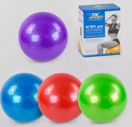 М'яч для фітнесу B 26266 "TK Sport", 4 кольори, діаметр 65 см, в коробці