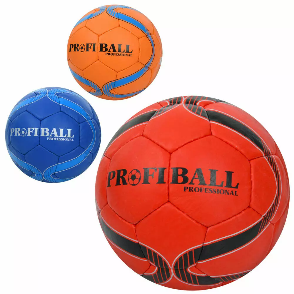 М'яч футбольний 2500-267 розмір 5, ПУ1, 4мм, ручна робота, 32 панелі, 400-420г, 3 кольори, кул.