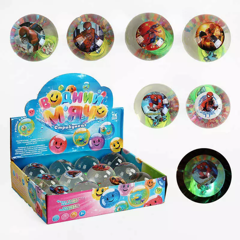 М`яч стрибун C 65465 (12) "TK Group", ЦІНА ЗА 12 ШТУК В БЛОЦІ, “Герой”, блискітки, підсвічування, в коробці