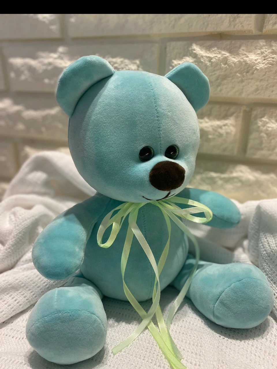 Игрушка изготовлена с качественных материалов, мягкая и приятная на ощупь. Мятного цвета. Размер 33 см.