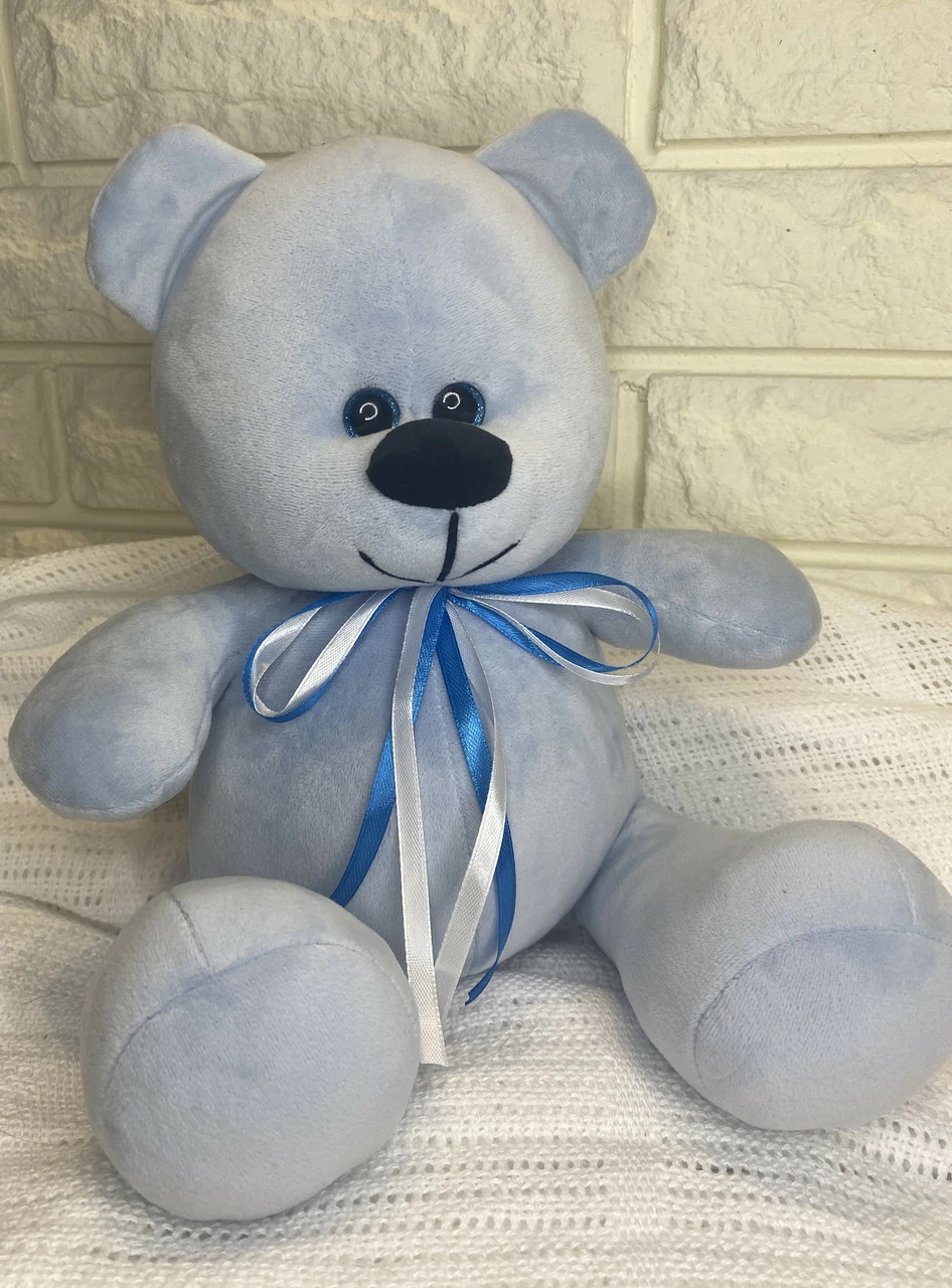 Игрушка изготовлена с качественных материалов, мягкая и приятная на ощупь. Голубого цвета. Размер 33 см.