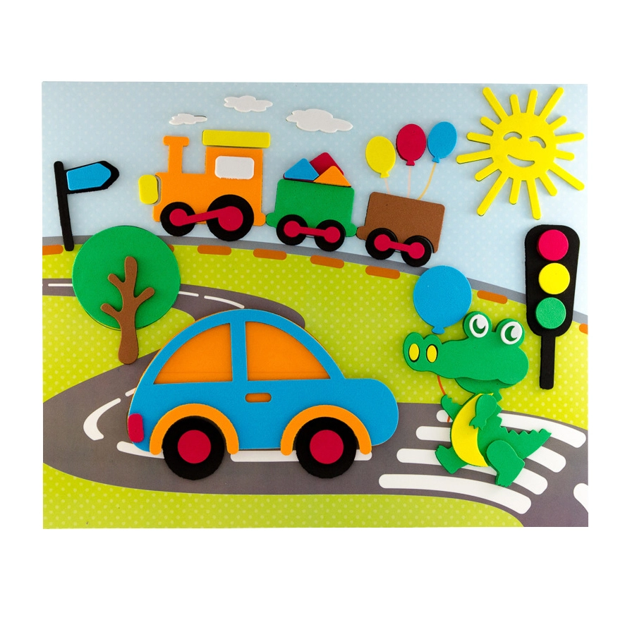 Кожна коробка містить: картонну основу аплікації; маленьку підказку-малюнок готової аплікації; м'які тематичні деталі для виконання аплікації.Вам не знадобляться ножиці та клей, не буде паперових клаптиків у пориві творчого безладу.Вся інструкція на коробці - зніми паперовий захисний шар з деталі та приклей у точне місце.