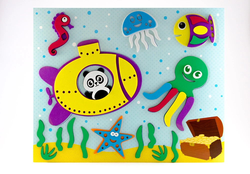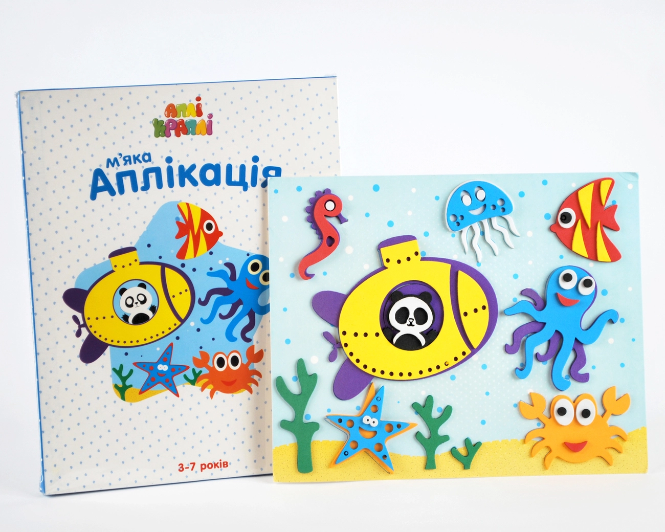 Кожна коробка містить: картонну основу аплікації; маленьку підказку-малюнок готової аплікації; м'які тематичні деталі для виконання аплікації.Вам не знадобляться ножиці та клей, не буде паперових клаптиків у пориві творчого безладу.Вся інструкція на коробці - зніми паперовий захисний шар з деталі та приклей у точне місце.