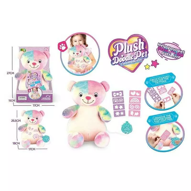 М`яка іграшка DR 5201 (32/2) “Ведмедик”, малюй світлом, ліхтарик у вигляді лапки на батарейках, трафарети, висота 26.5 см, в коробці