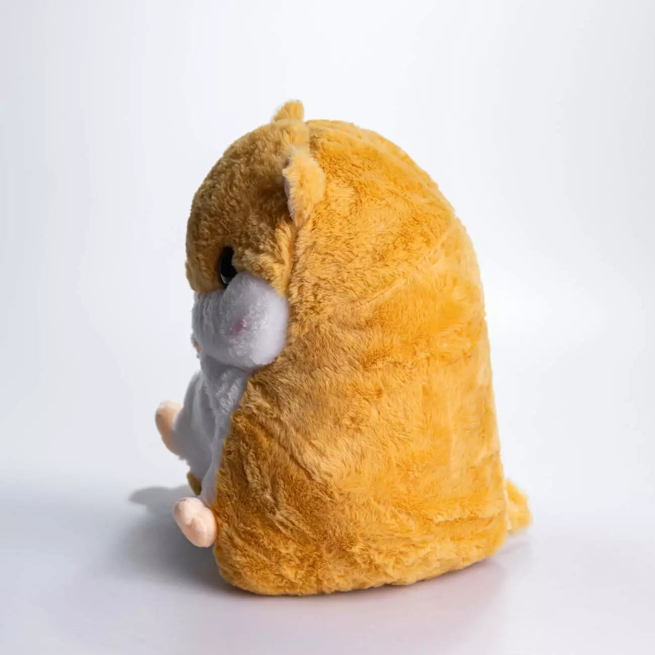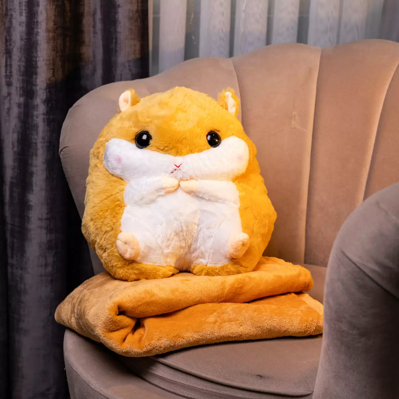М'який плюшевий хом'ячок з потайною кишенею-блискавкою на спинці для зберігання теплого пледа ідеальний для дому, машини та подорожей, і як подарунок дитині або любителю милих речей. М'який та безпечний матеріал підходить для ігор та сну, а плед досить великого розміру підходить для дітей та дорослих, зігріє взимку та створить затишок у поїздці.
