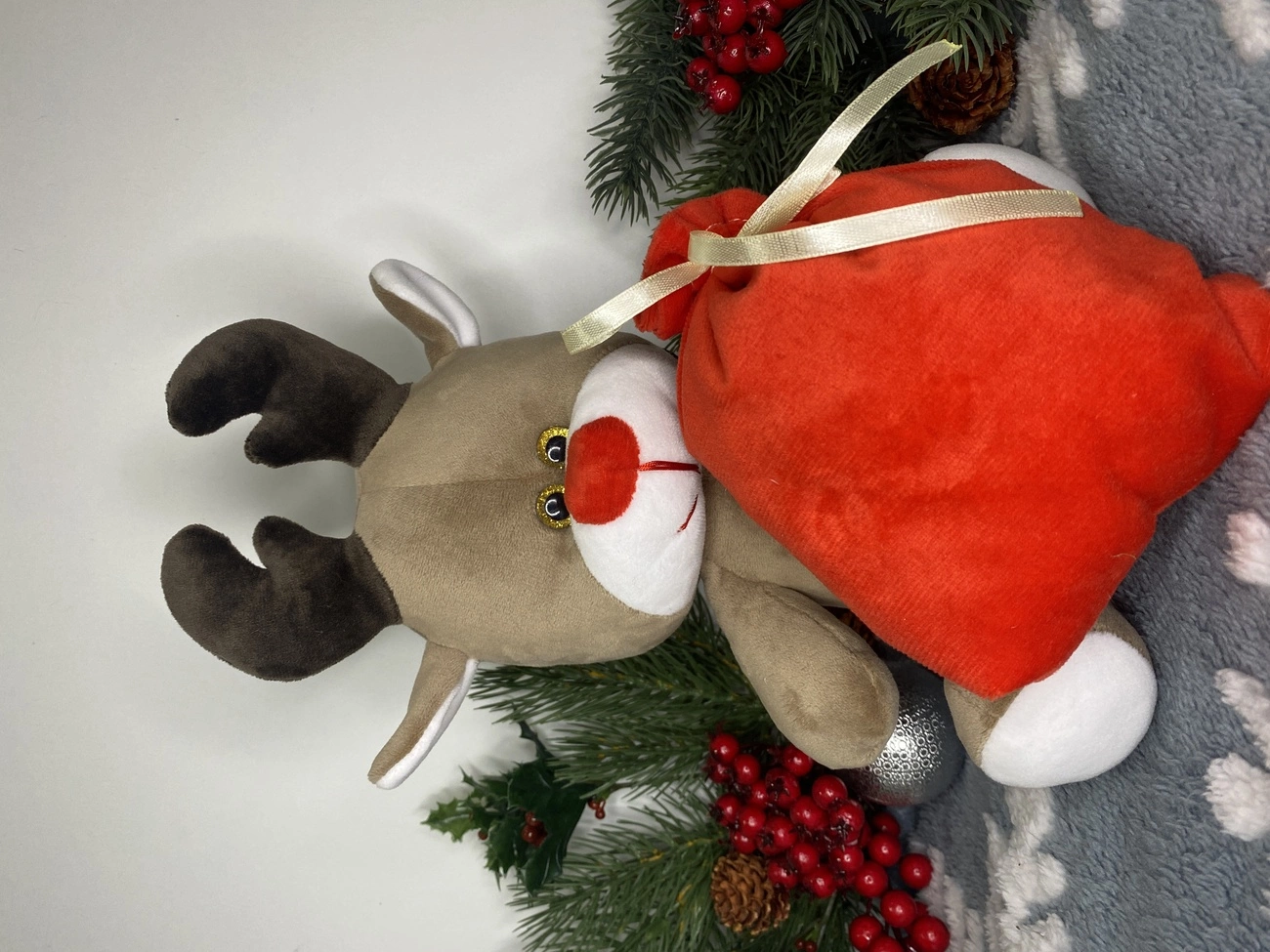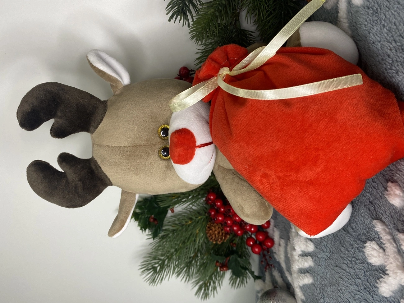 М’яка іграшка різдвяний олень з мішком