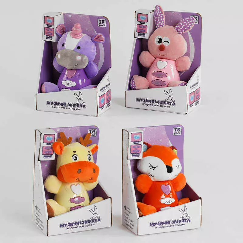 М`яке брязкальце UK-70104 (48) TK Group", 4 види, ОЗВУЧУВАННЯ УКРАЇНСЬКОЮ МОВОЮ, підсвічування, 3 пісні, 3 колискові, в коробці ВИДАЄТЬСЯ МІКС ВИДІВ