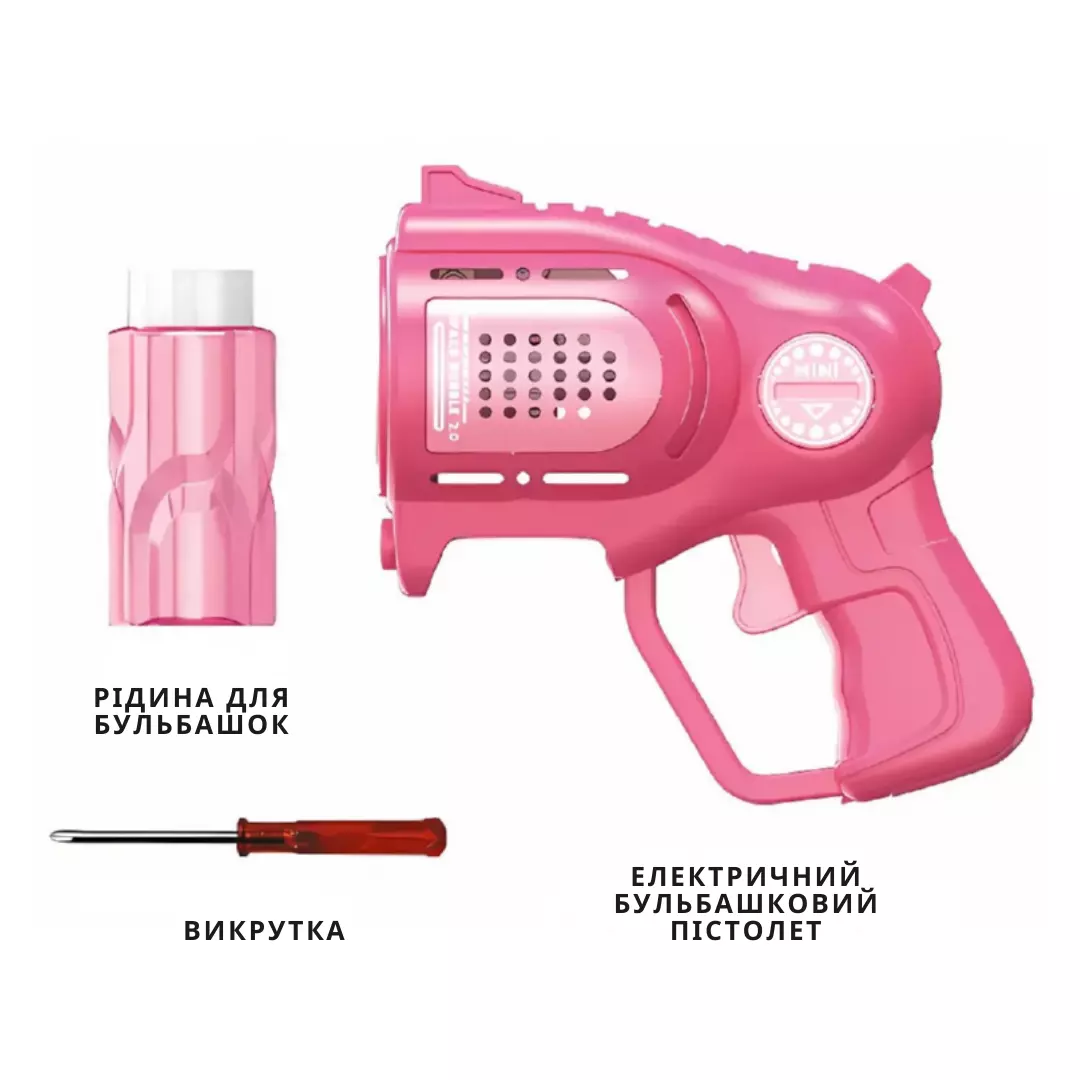 Комплектация: пузырьковый пистолет, бутылка с раствором (150 мл),