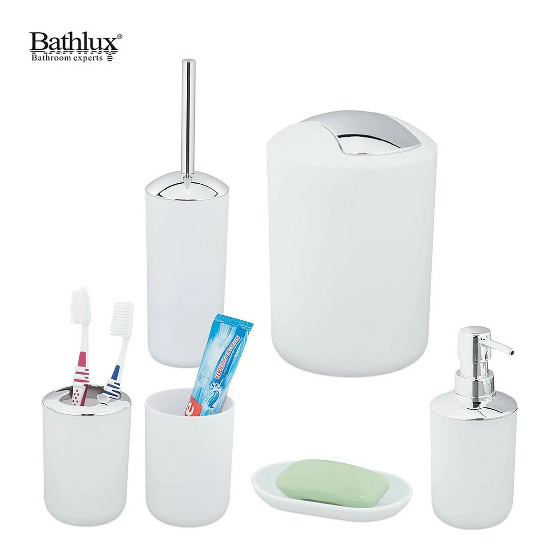 Стильний сучасний комплект аксесуарів Bathlux для санвузла зробить