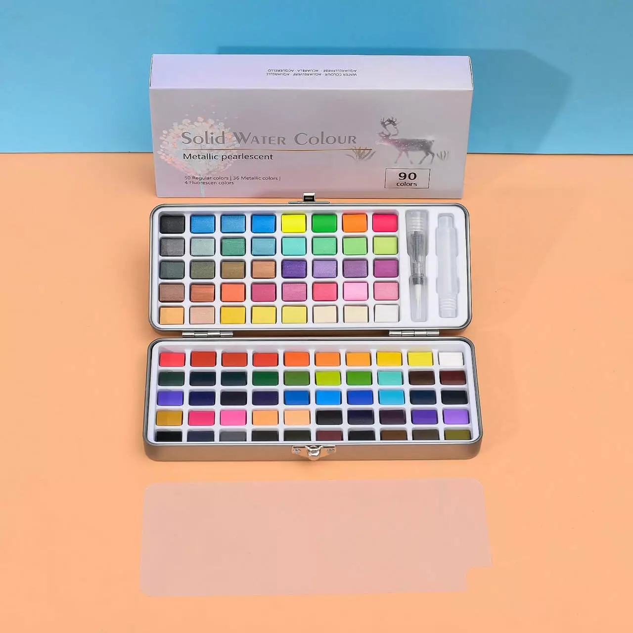 Набір акварельних фарб, який включає неонові і металічні кольори,