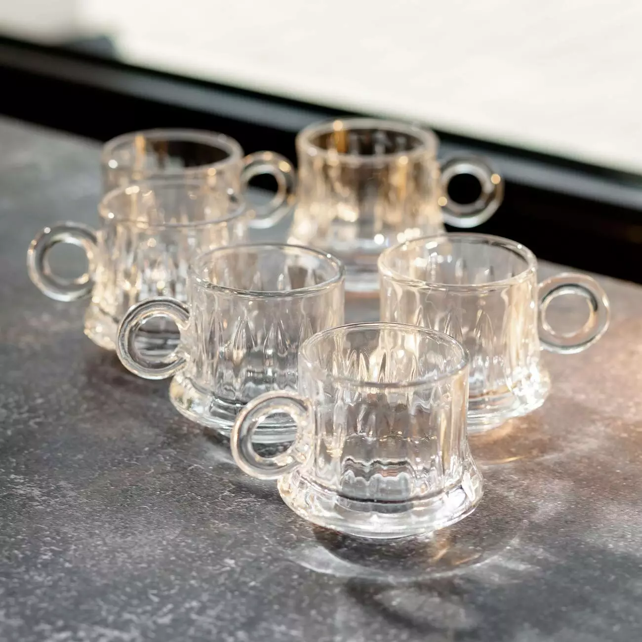 Прозоре скло дозволяє оцінити колір напою, а компактний розмір робить чашки зручними у використанні. Завдяки міцному матеріалу, вироби добре переносять щоденне застосування. Чашки можна використовувати як у домашніх умовах, так і в закладах громадського харчування.