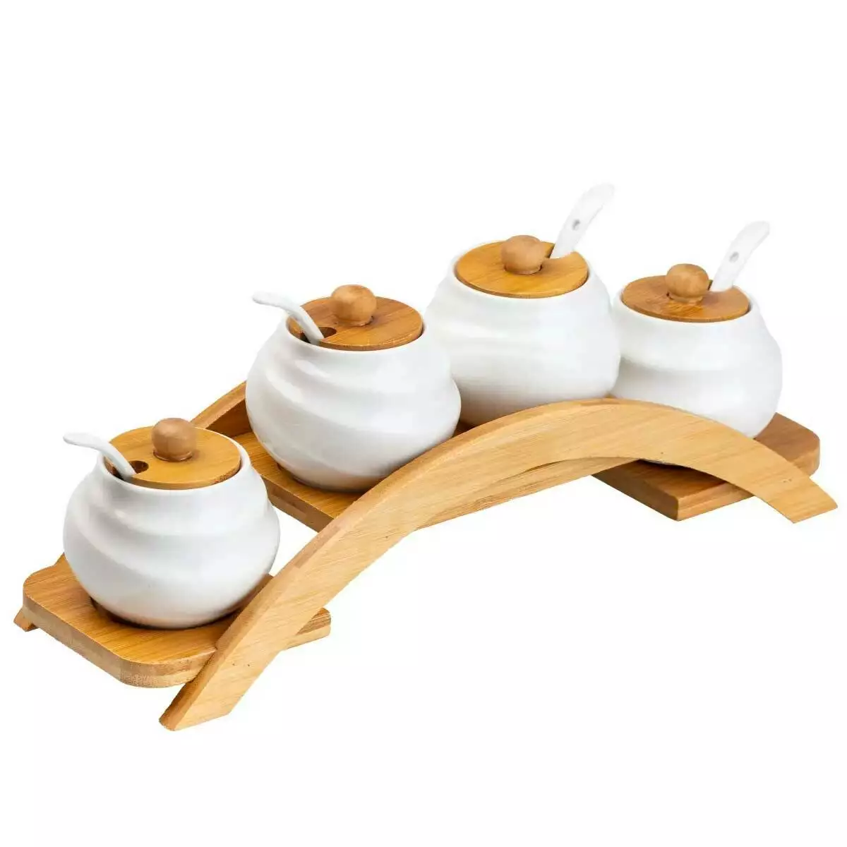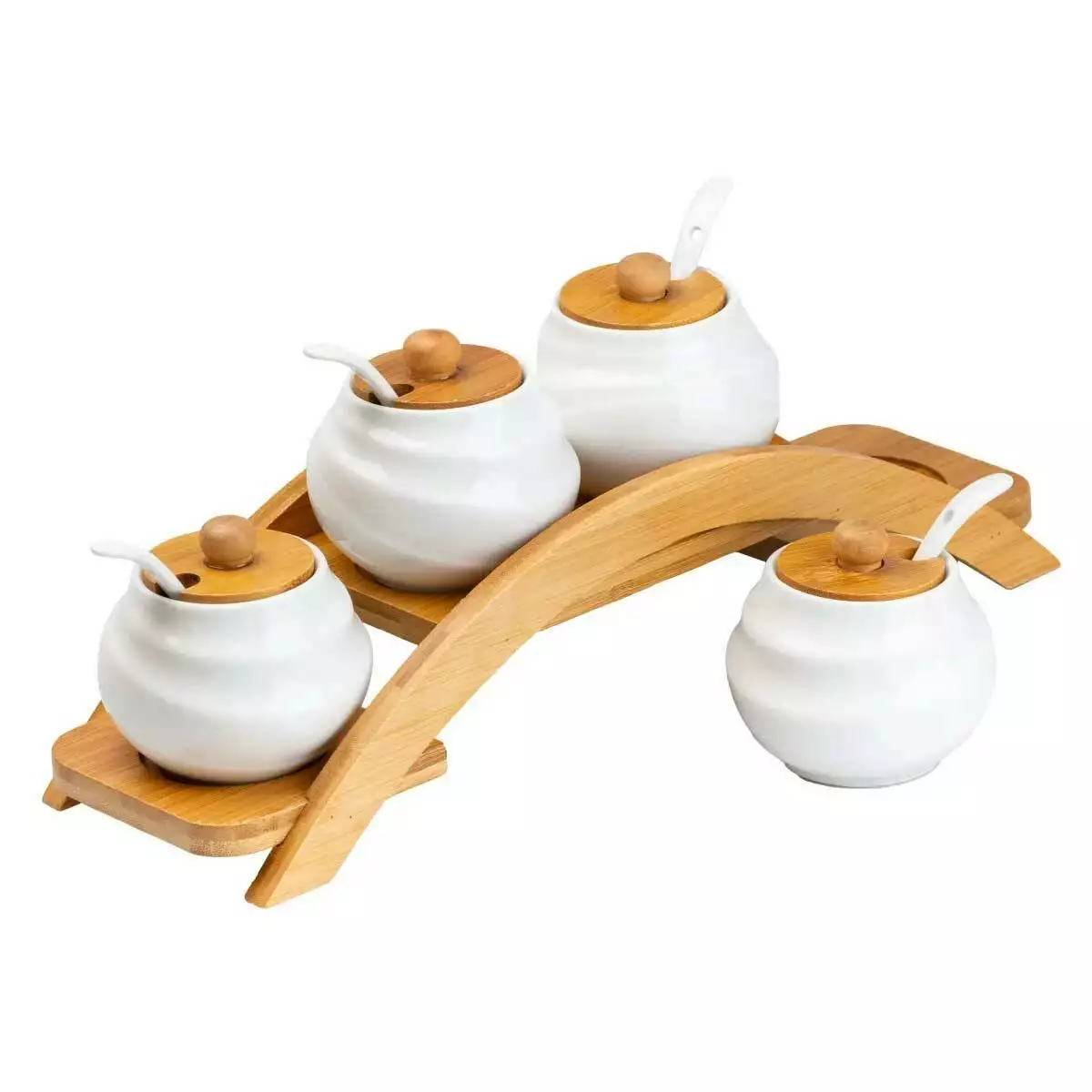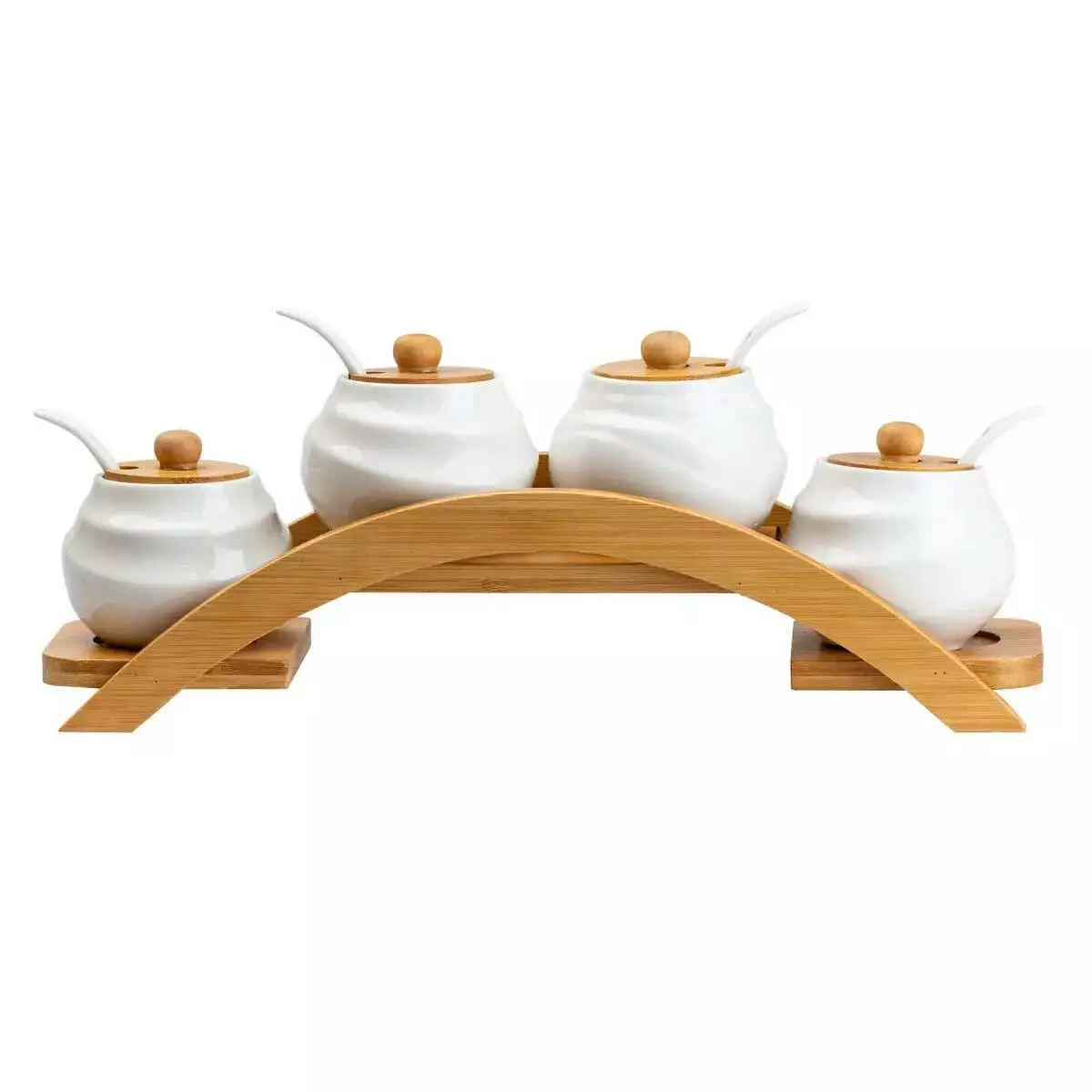 Набір баночок для спецій 4 штуки на бамбуковій підставці , білий