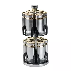 Металева підставка з двома ярусами додає комплекту елегантності та функціональності. Завдяки своїй конструкції, вона допомагає заощадити простір на кухні, дозволяючи зручно організувати всі 12 баночок. Хромоване покриття підставки додає сучасного блиску та гармонійно вписується в будь-який інтер’єр, від класичного до модерного.