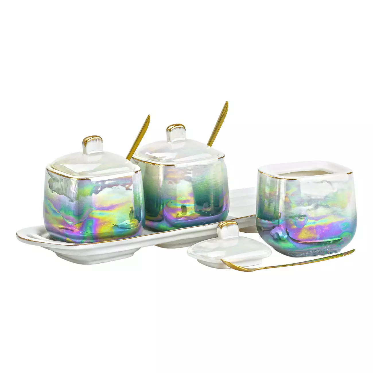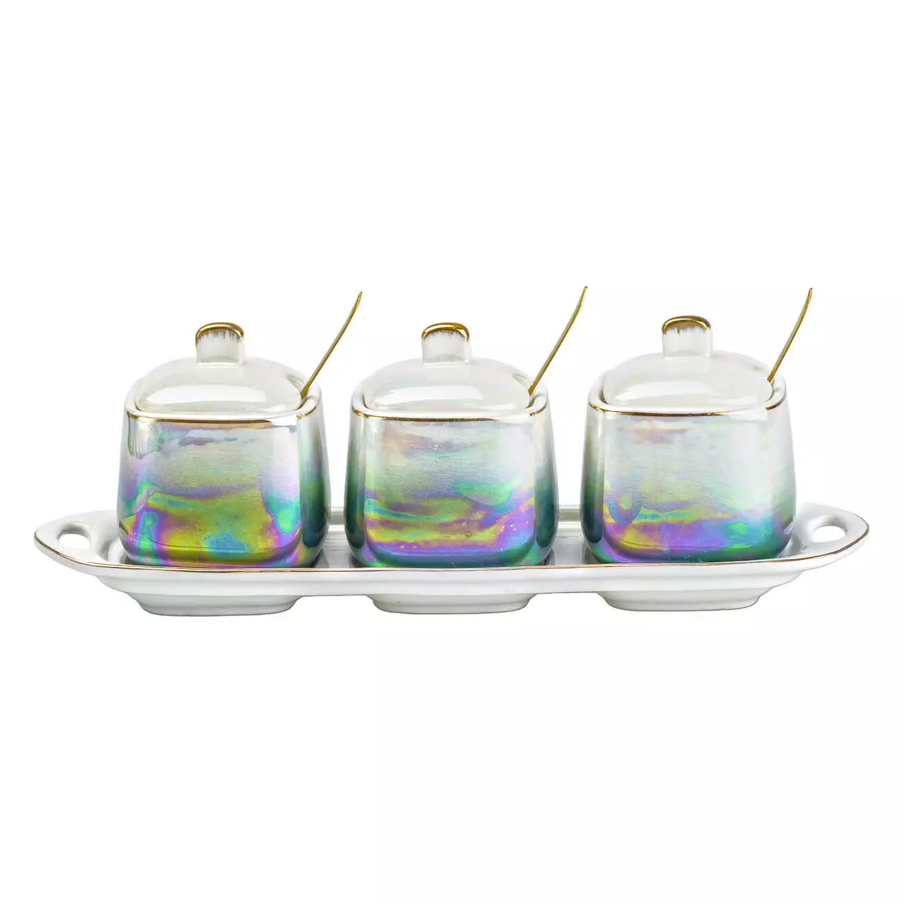 Баночки та підставка виготовлені з високоякісного порцеляни.