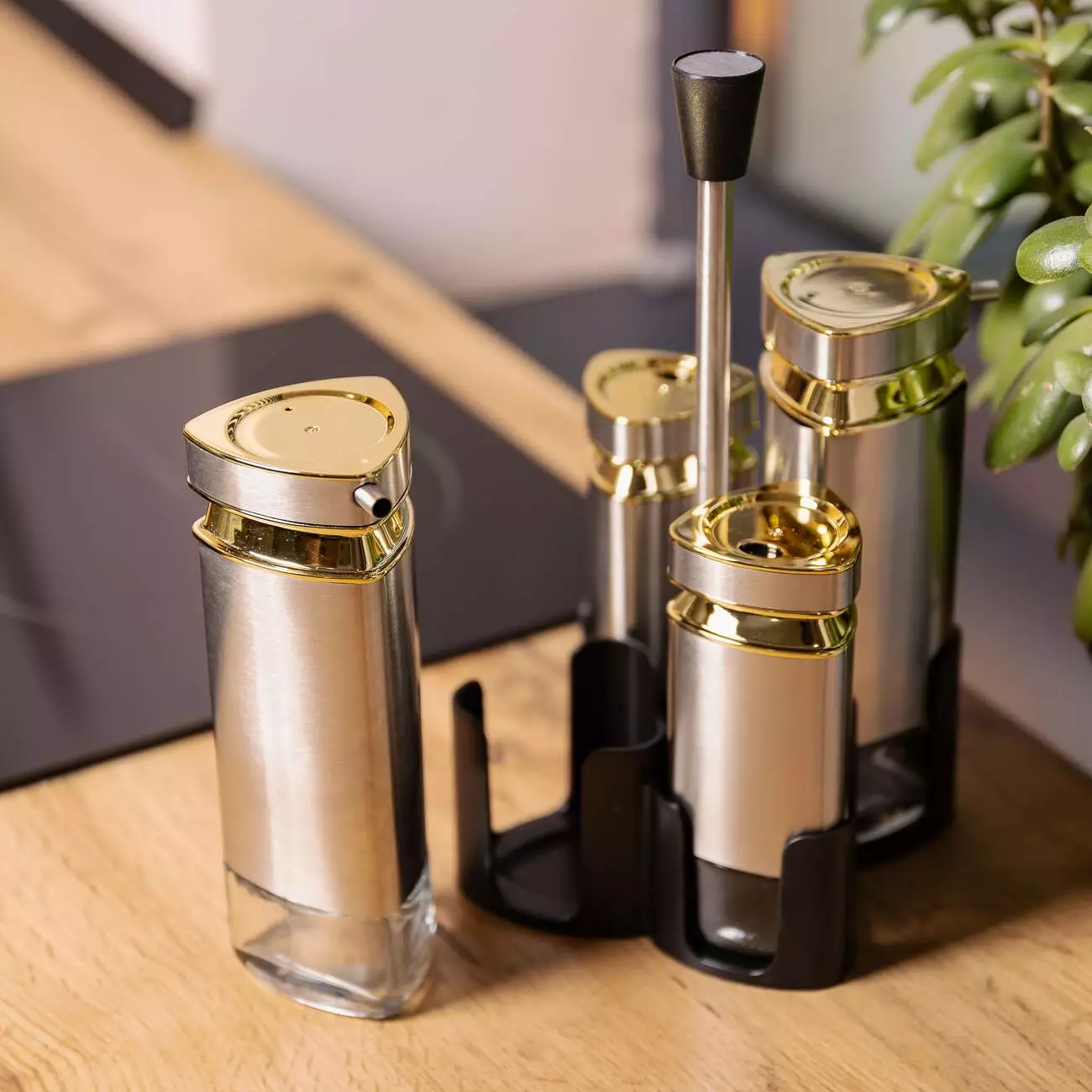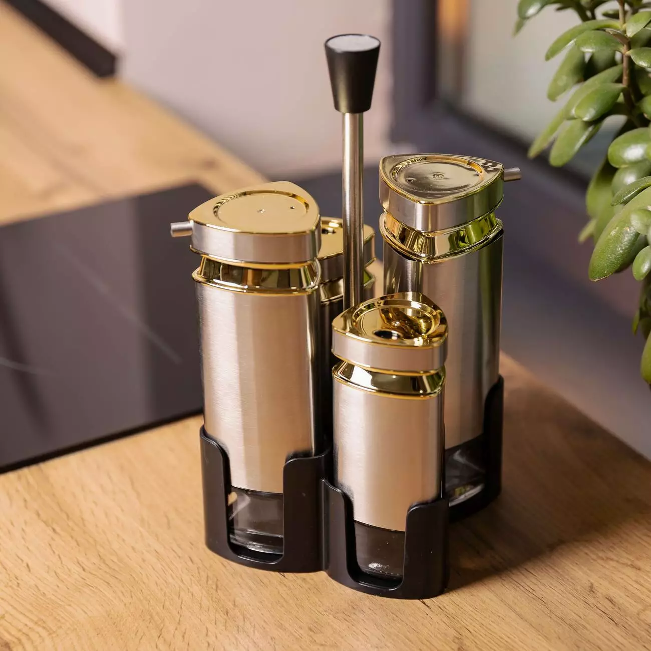 Набір баночок для спецій на підставці, виконаний у стильному