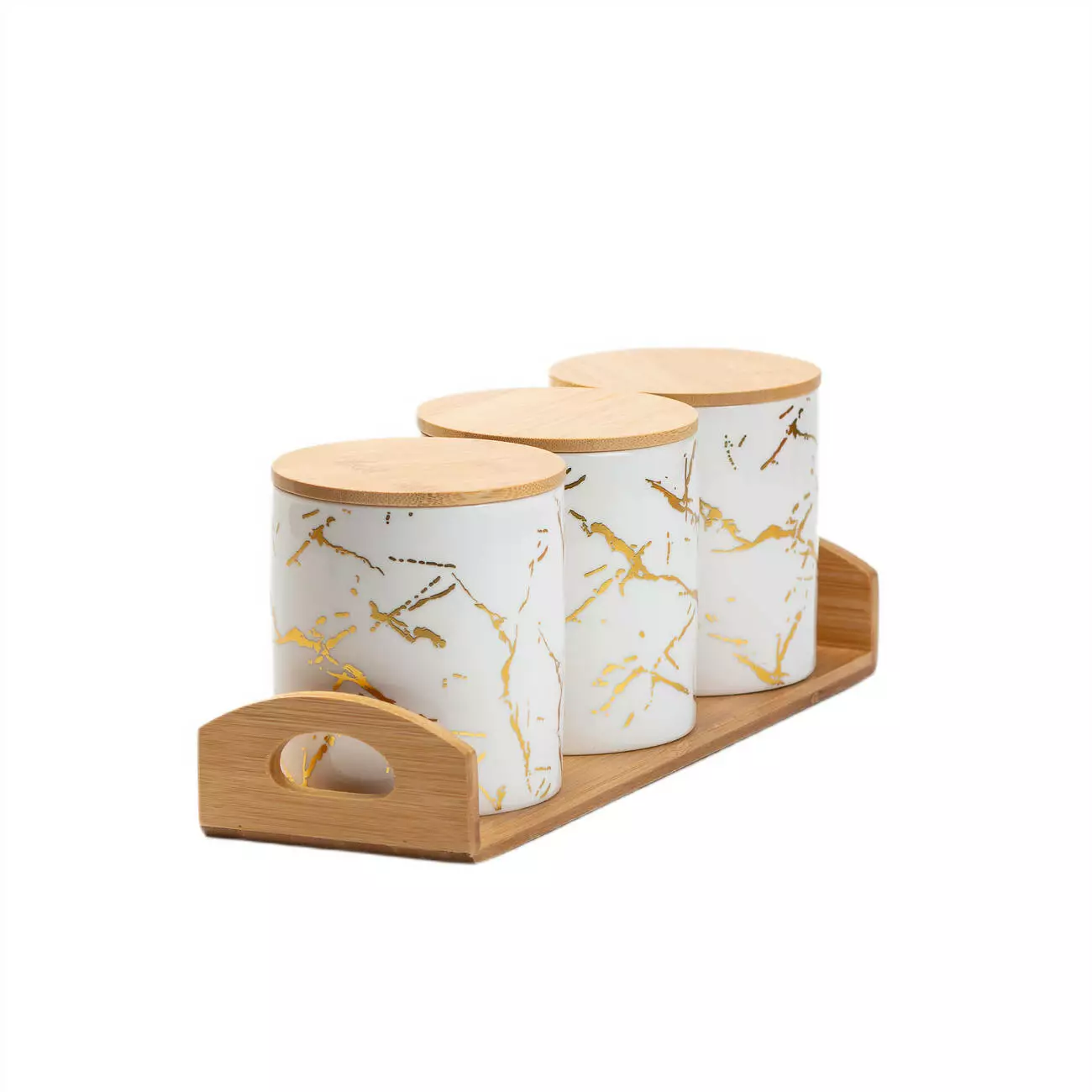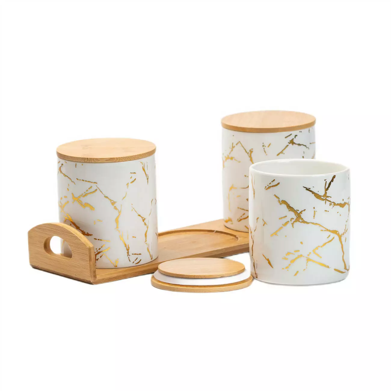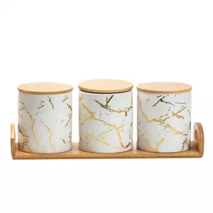 порцелянових банок, кожна з яких має бамбукову кришку, що