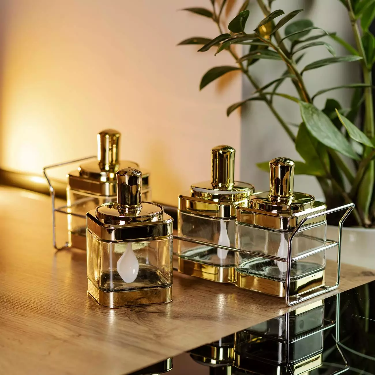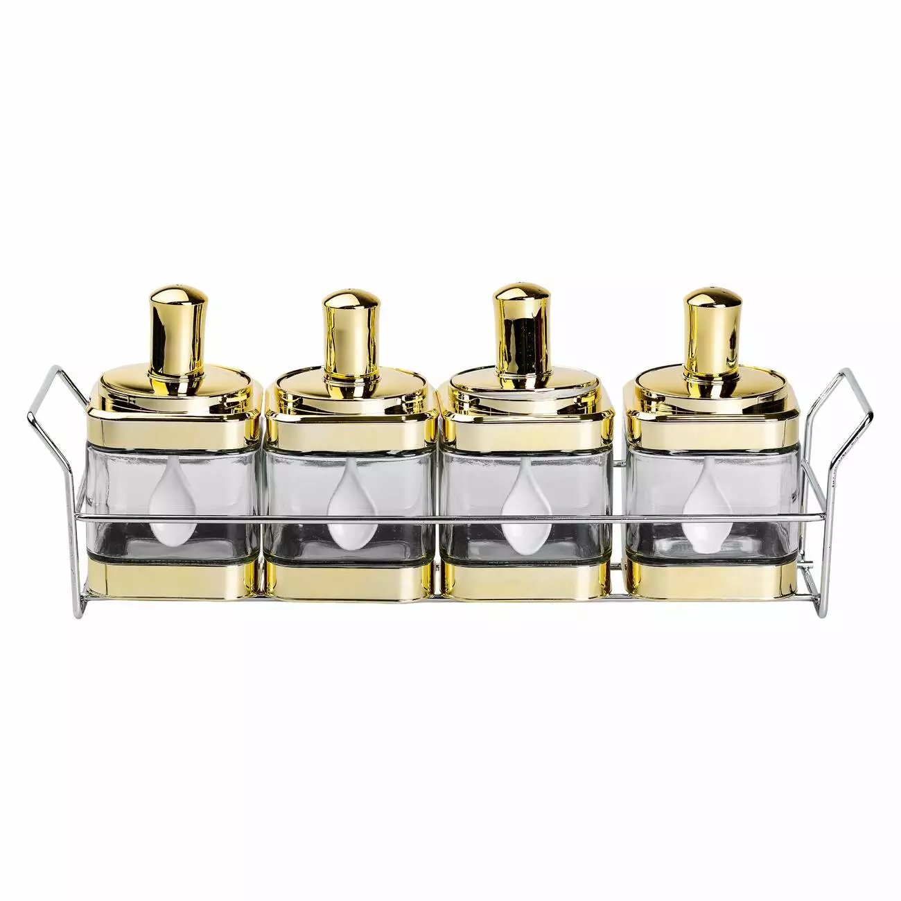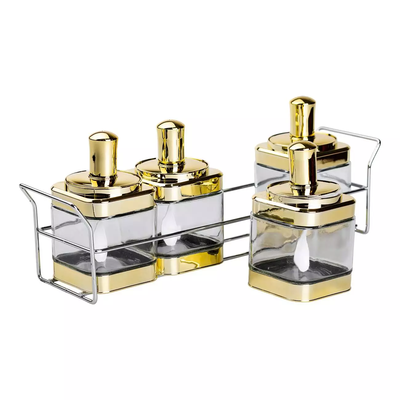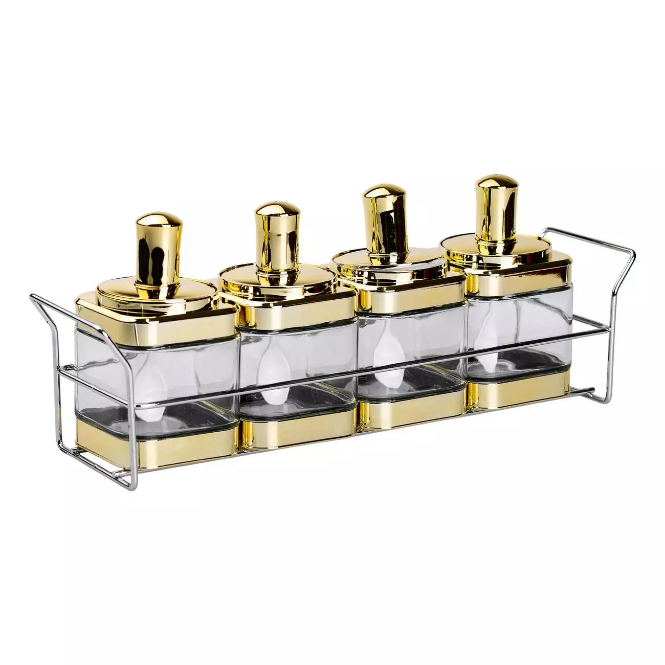 Набір банок для сипучих продуктів 4 штуки по 350 мл з ложкою на підставці, золото
