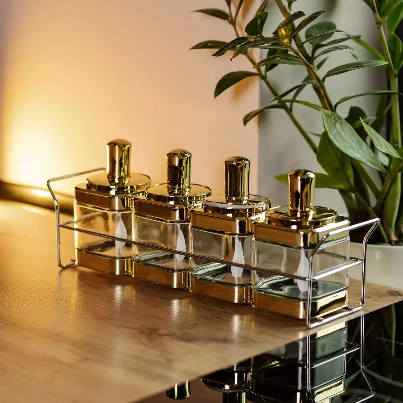 У набір входить підставка з нержавіючої сталі для зручної організації зберігання та використання ємностей.