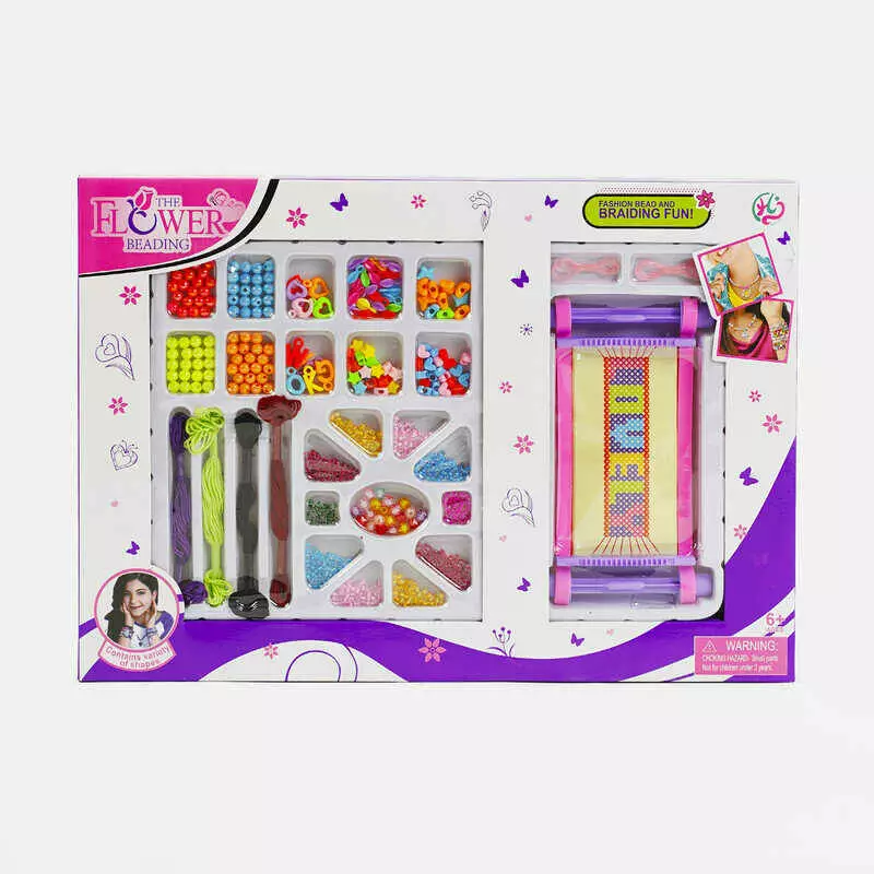 Набір бісеру 567 (48/2) 21 вид намистин, 4 кольори ниток, станок для плетіння, в коробці