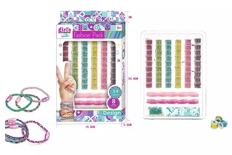 Чудовий набір для дівчат, які полюбляють робити прикраси своїми руками! На цей раз будемо плести кольорові браслети. Набір включає мотки ниток 6 яскравих кольорів, заглушки та спеціальні гачки для зручного плетіння. Зробити яскраву прикрасу набагато легше, ніж може здаватися. Все, що потрібно для творчого дозвілля - гарний настрій та набір для плетіння браслетів! Особливості: - включає 54 мотків ниток; - 6 яскравих кольорів, які гармонійно поєднуються між собою; - зручні гачки для плетіння; - 10 заглушок для готових браслетів; - набір дозволяє зробити 8 плетених браслетів.