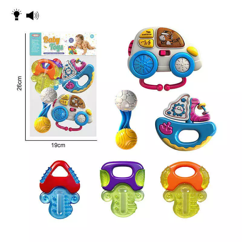 Набір брязкалець 8431 A-6 (120/2) “Машинка“, підсвічування, веселі мелодії, звуки, 2 режими гучності, гумові прорізувачі, в пакеті