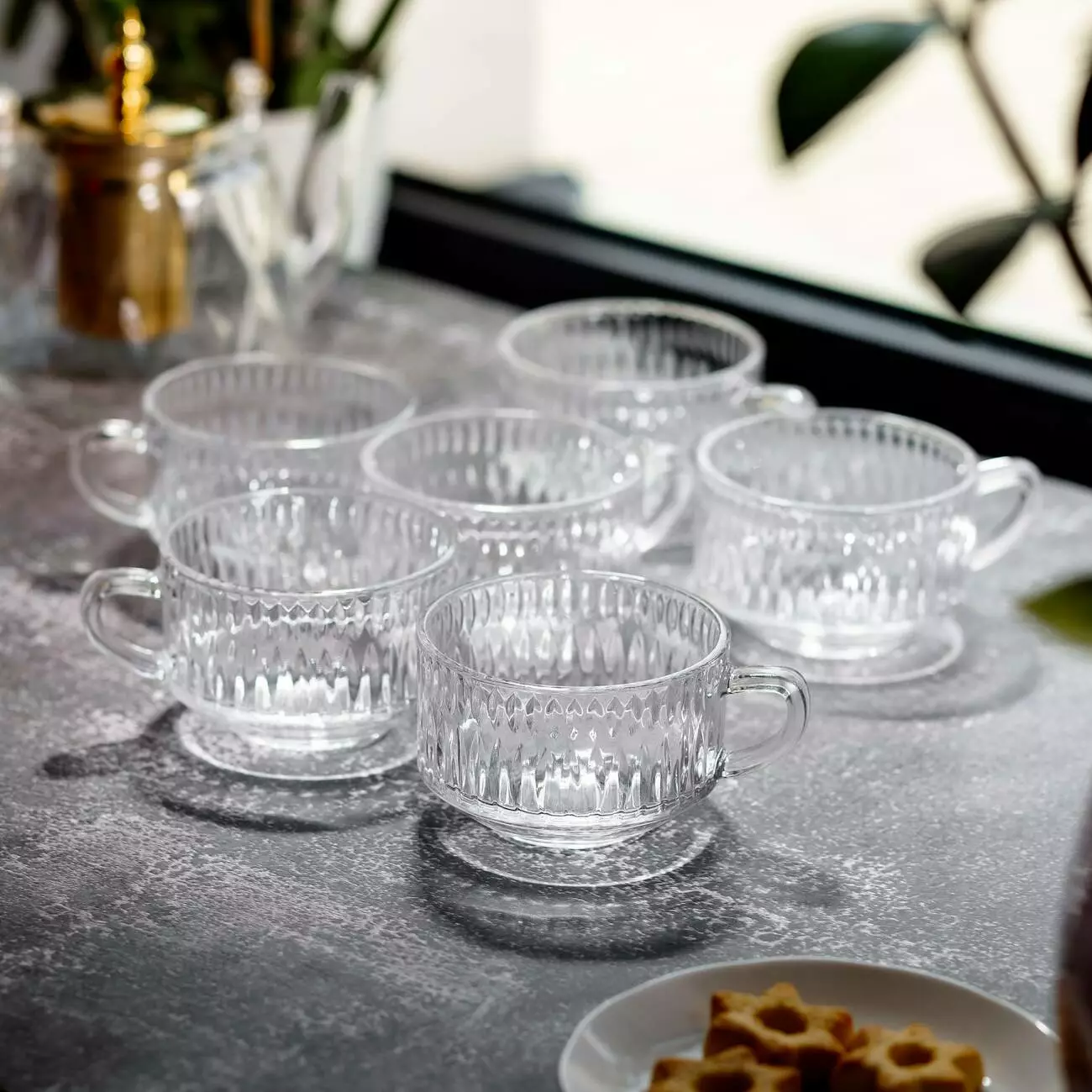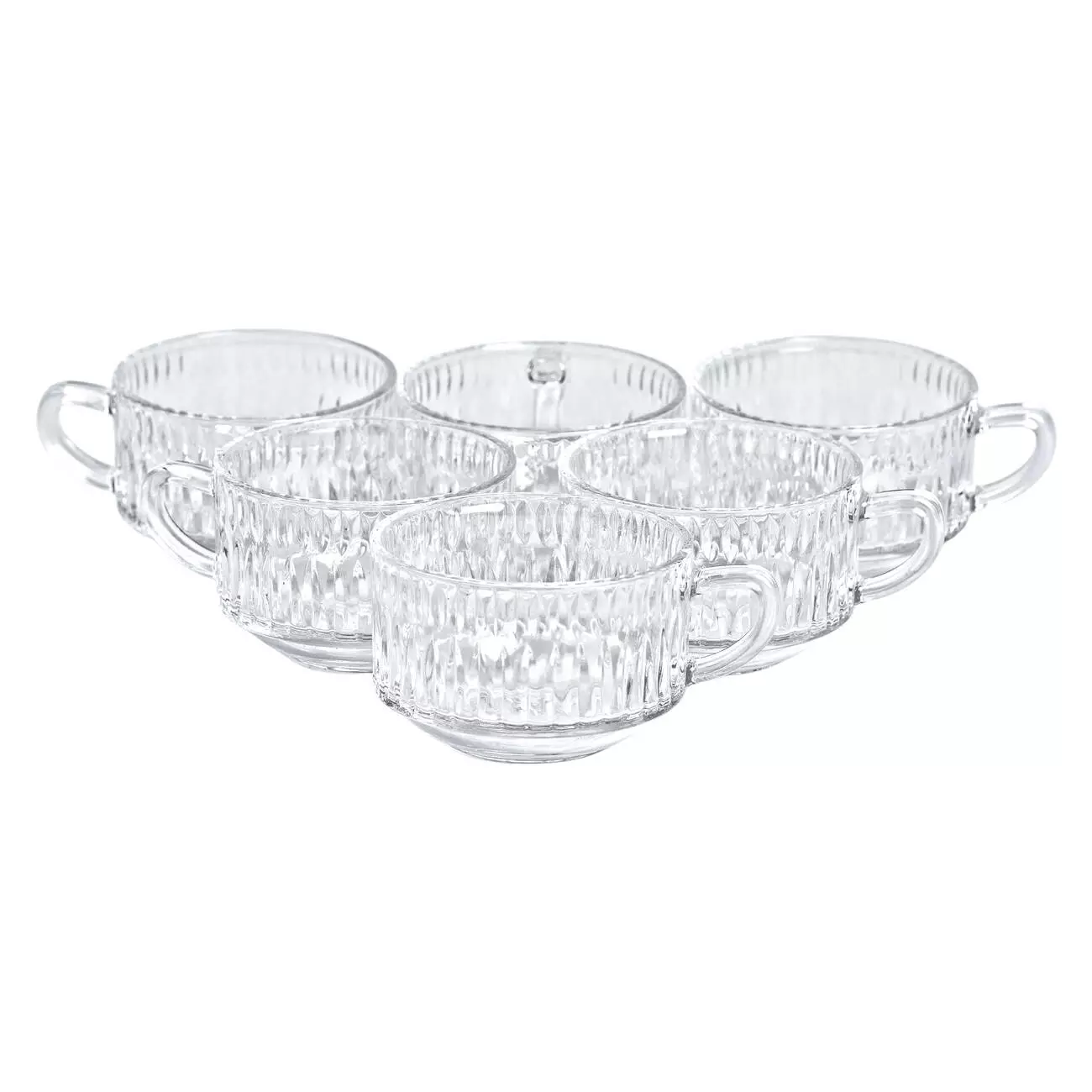 Завдяки зручній формі чашки комфортно лежать у руці, а міцне скло забезпечує стійкість до щоденного використання. Вироби гармонійно поєднуються з будь-яким сервіруванням і можуть використовуватися як у побуті, так і в кафе чи ресторанах.