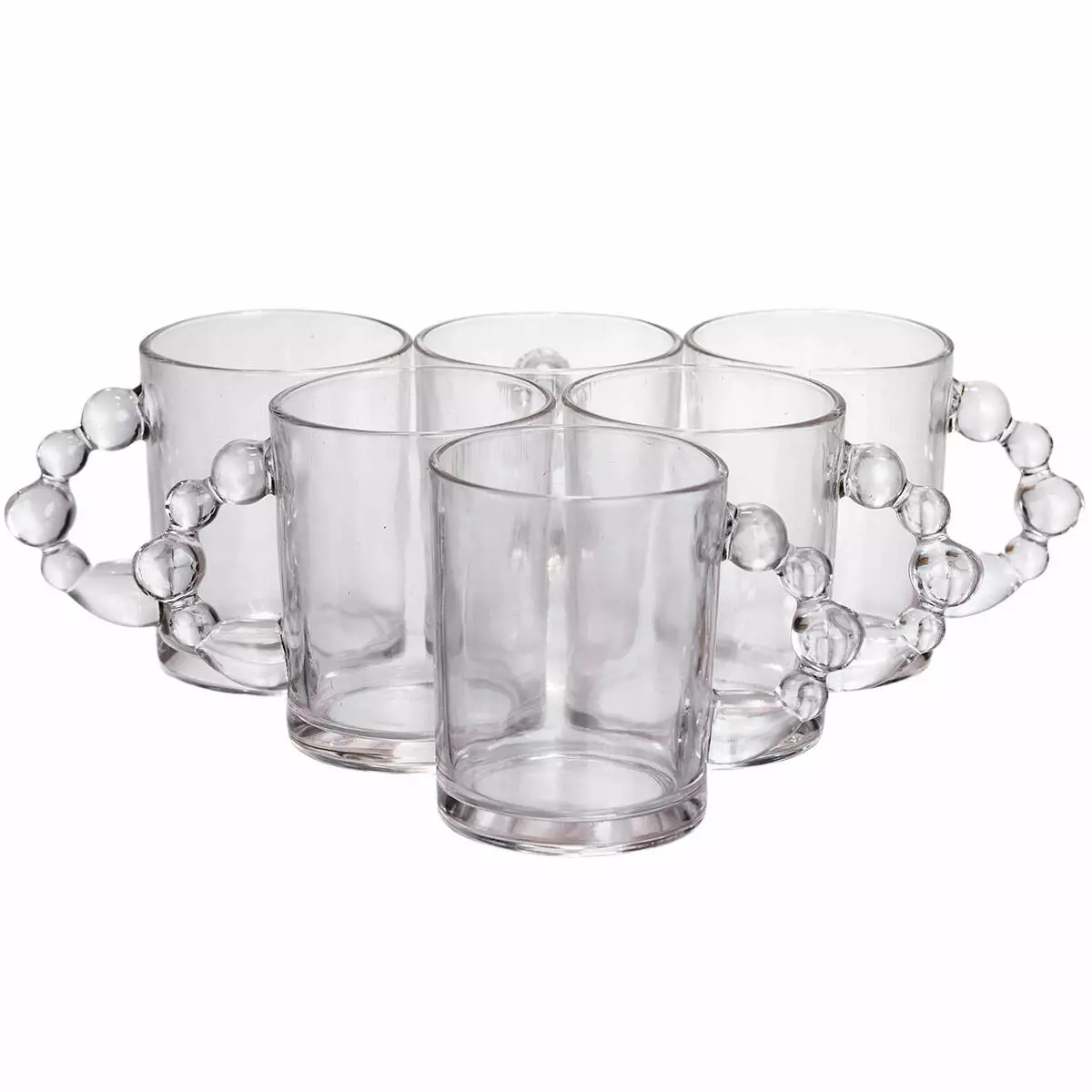 Набір скляних чашок із ручкою у формі перлин стане елегантним доповненням до столу. Прозоре скло дозволяє повністю оцінити колір напою, а незвичайна форма ручки додає вишуканості й сучасного акценту. Завдяки універсальному дизайну чашки підійдуть як для чаю чи кави, так і для подачі десертів або напоїв на свята.