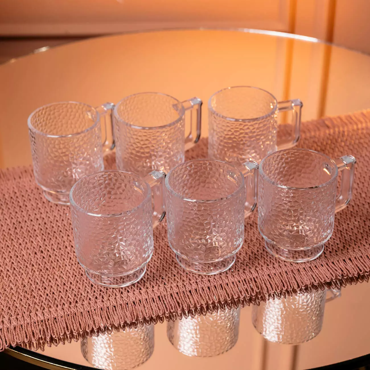 Елегантний набір із 6 скляних чашок з молотковою фактурою