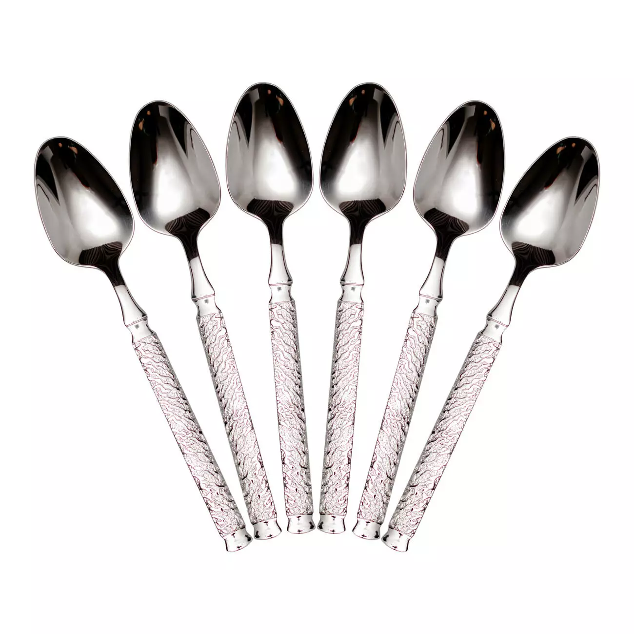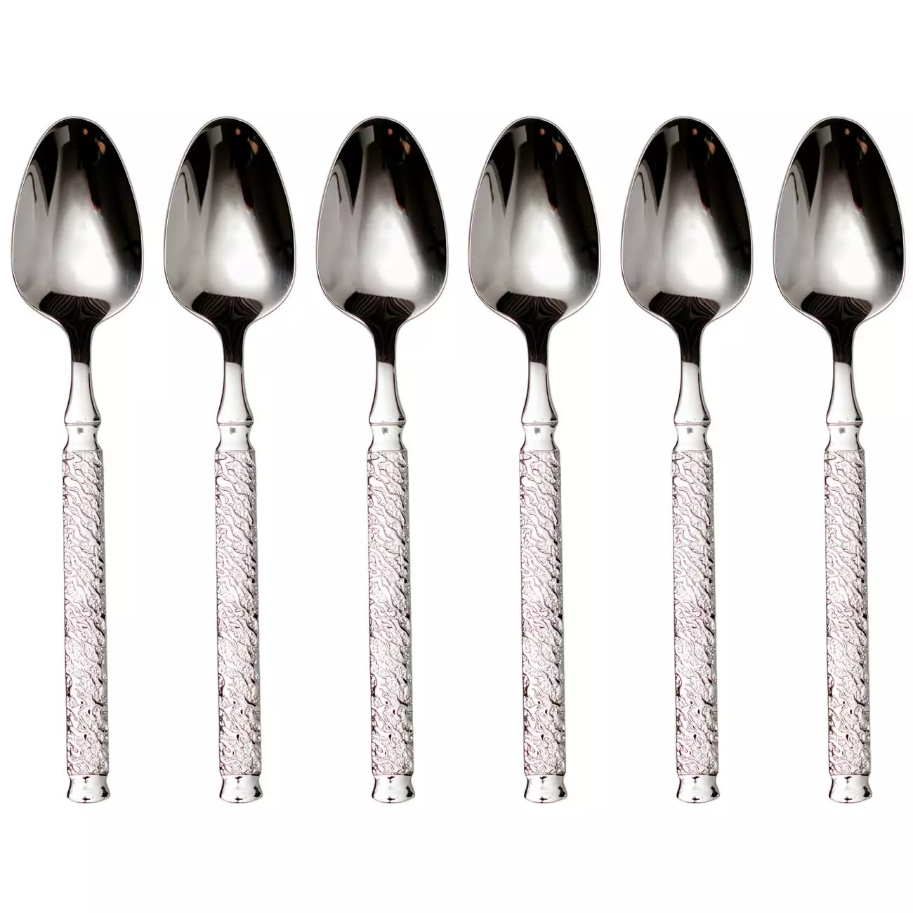 Набір десертних ложок нержавіючої сталі підходить як для повсякденного використання, так і для сервірування святкового столу. Ложки мають витончений дизайн з молотковою текстурою та поєднуються з більшістю варіантів оформлення.