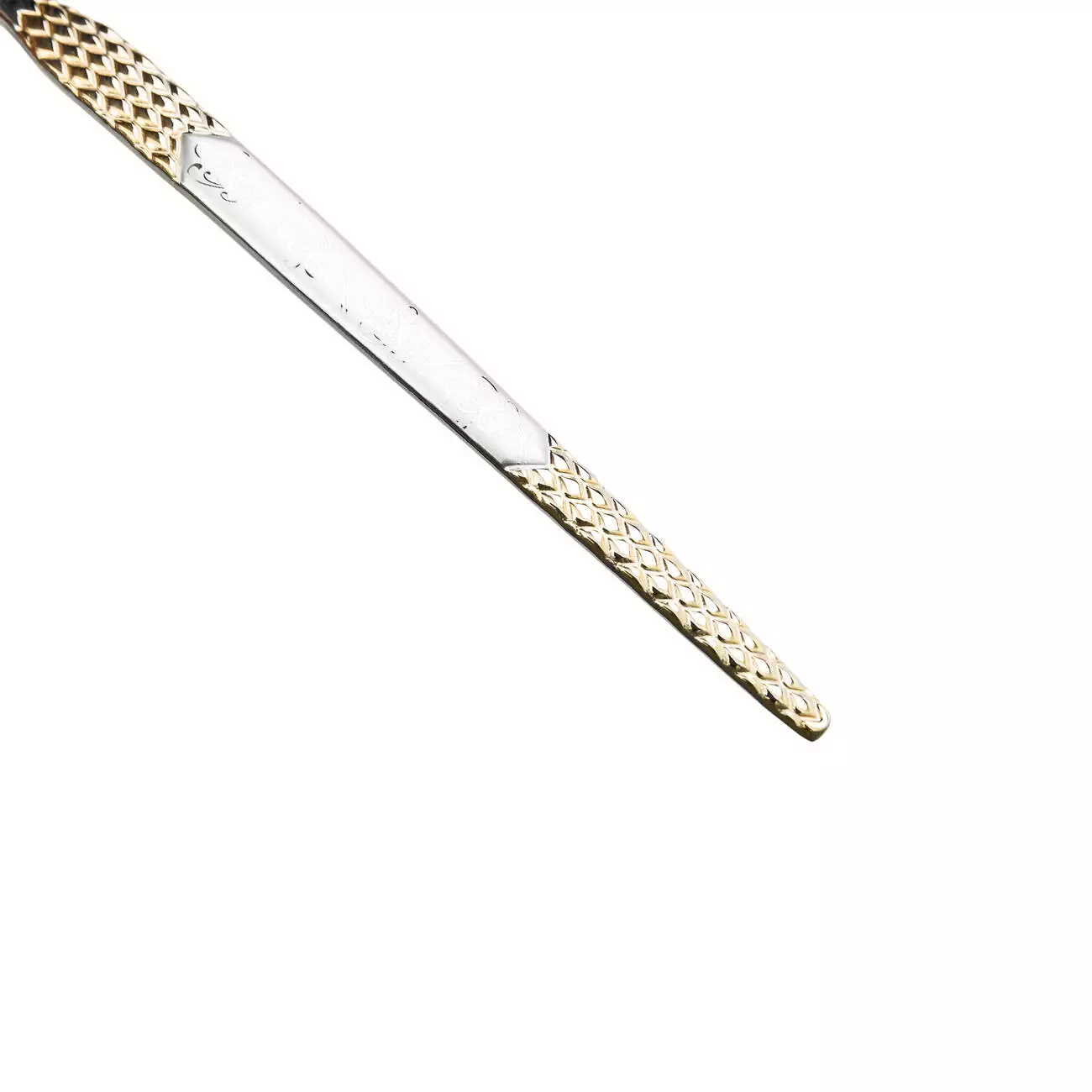 Дизайн поєднує сріблястий колір із позолотою, що надає приборам вишуканого вигляду та робить їх доречними як для повсякденного використання, так і для святкової сервіровки. Дзеркальна поліровка забезпечує гладку поверхню, що спрощує догляд і очищення.