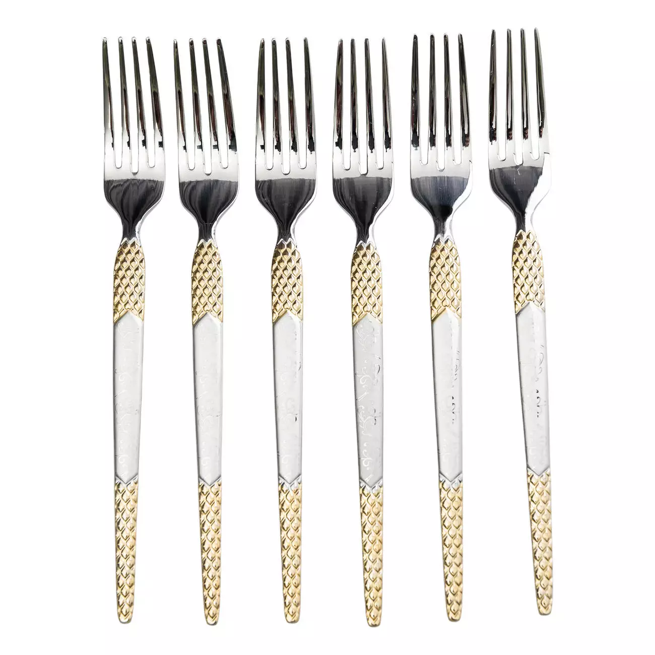 Набір десертних вилок з нержавіючої сталі 6 штук, срібло з позолотою