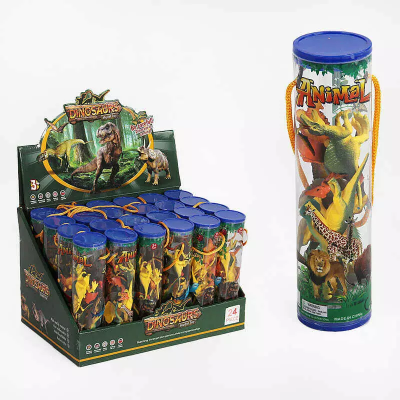 Набір динозаврів 894 (12/2) тубус, камінь, кущик, ЦІНА ЗА 24 ШТУКИ В БЛОЦІ, в коробці