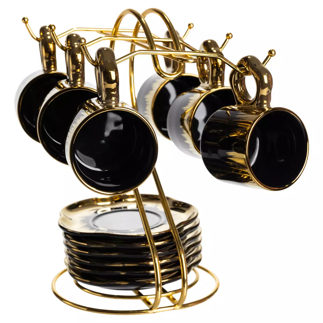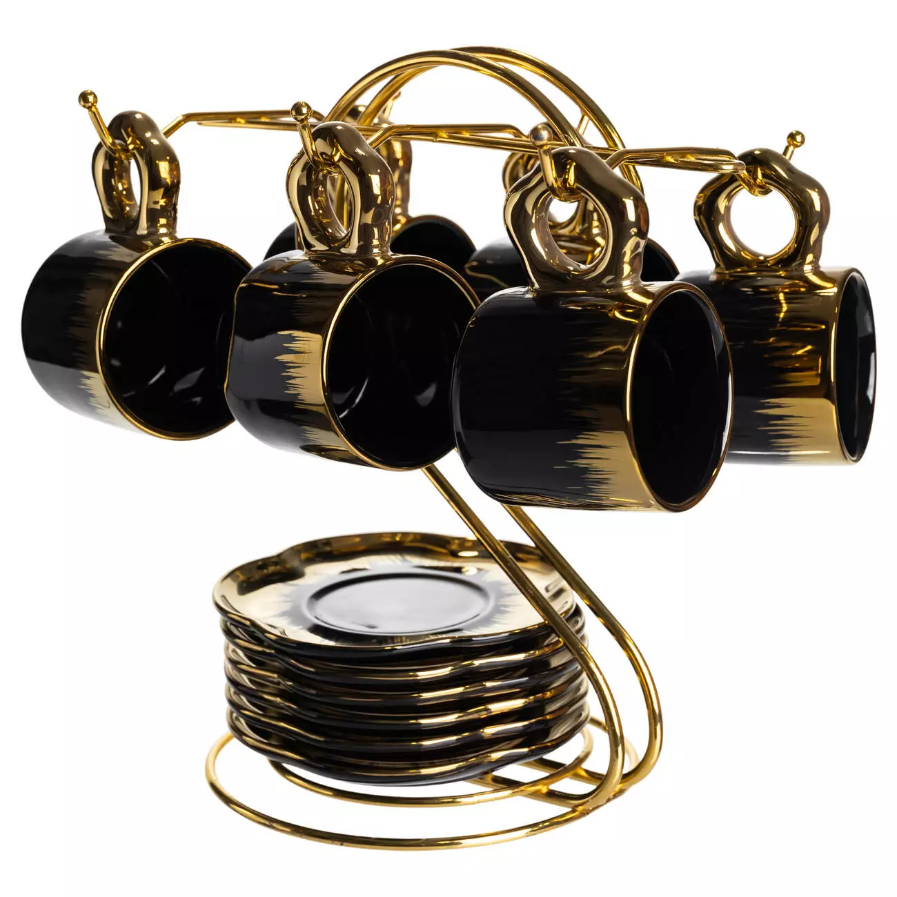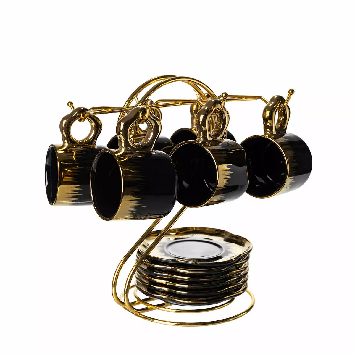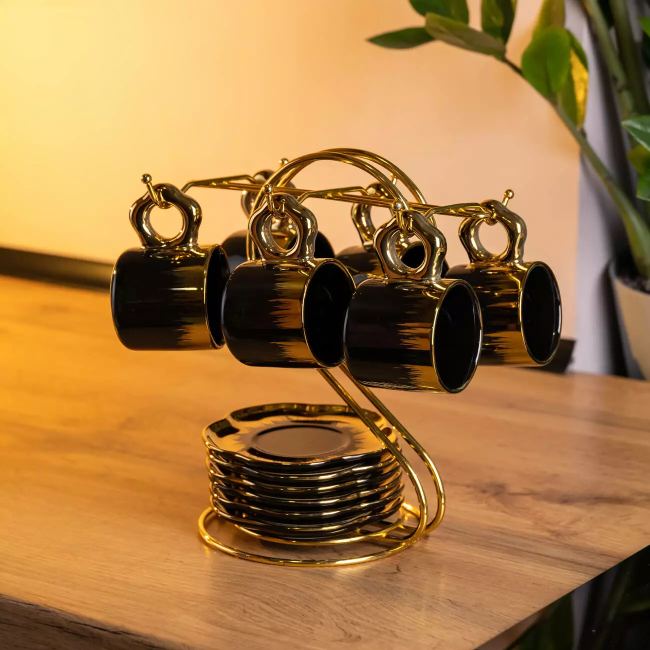 Набір для кави із порцеляни 12 предметів на 6 персон на металевій підставці, чорний