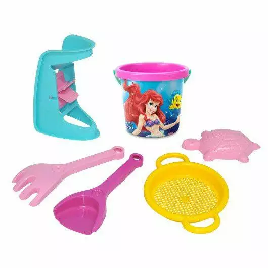 Яскраві набори для піску створять малюкові чудовий настрій для літніх ігор з піском і дадуть дитині можливість будувати різні пісочні конструкції, розвиваючи при цьому фантазію і спритність ручок. Зручне і гарне дитяче відерце з круглою ручкою, прикрашене термонаклейкою, стане в нагоді не тільки влітку, а й в будь-яку іншу пору року для перенесення кубиків, іграшок та інших предметів, які захоче малюк. Набори для піску виготовлені з якісних і безпечних для малюка матеріалів. Вони відрізняються міцністю і стійкістю до погодних умов. В серію входять наступні тематичні набори: Міккі – Маус Мінні – Маус Крижане Серце Софія Прекрасна Тачки Принцеси Дісней Упаковка - сітка.