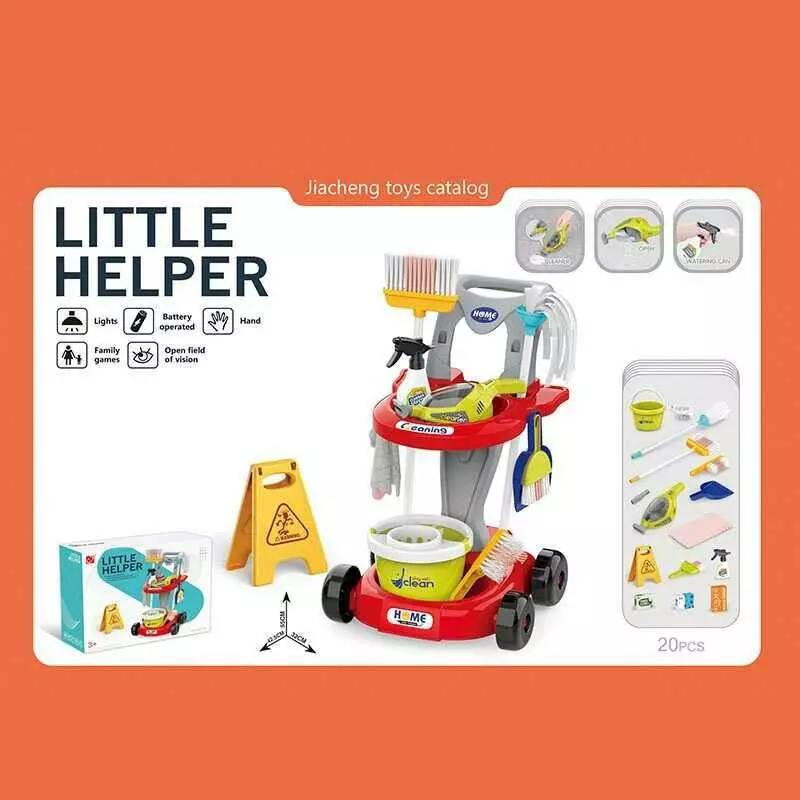 Набір для прибирання 667-69 (12) пилосос на батарейках, підсвітка, візок, відро, швабра, мітла, щітка, знак попередження, в коробці