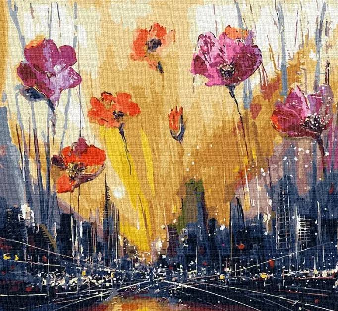Набір для розпису по номерах. "Маки над мегаполісом" 40*40см