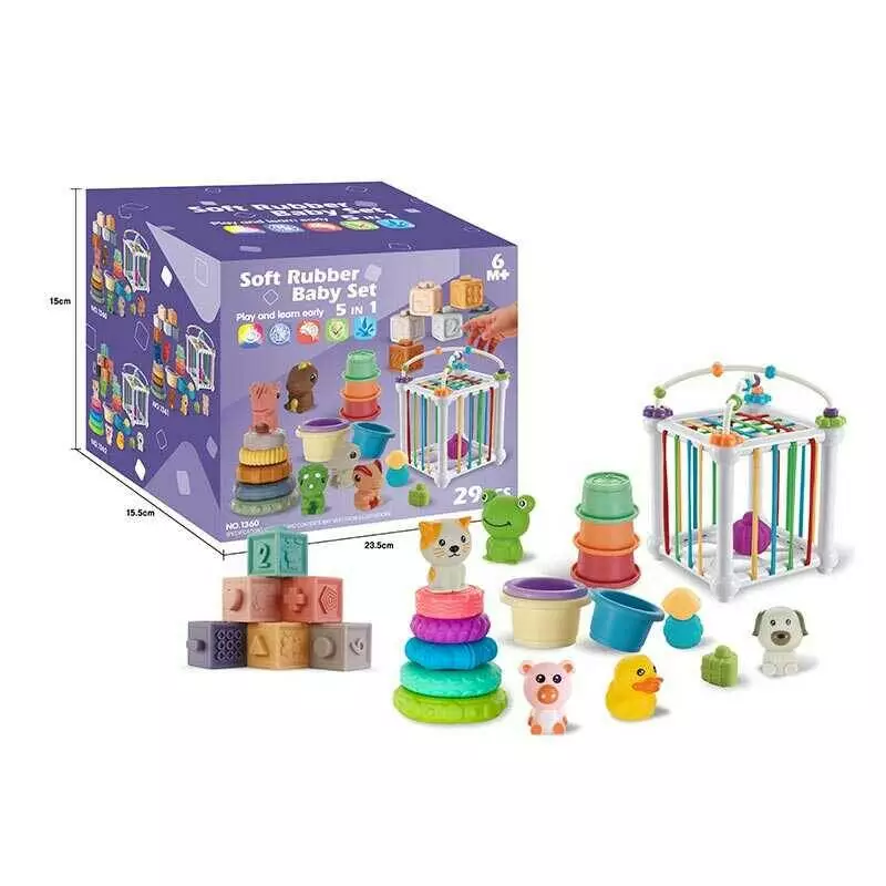 Набір для розвитку 1362 (18) пальчиковий театр, пірамідка, пірамідка з чашечок, кубики, куб із формами, ігри із намистинами, в коробці