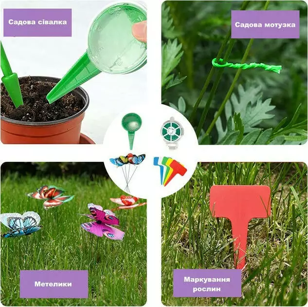 ґрунту, бирки для рослин різних кольорів, котушка із садовим
