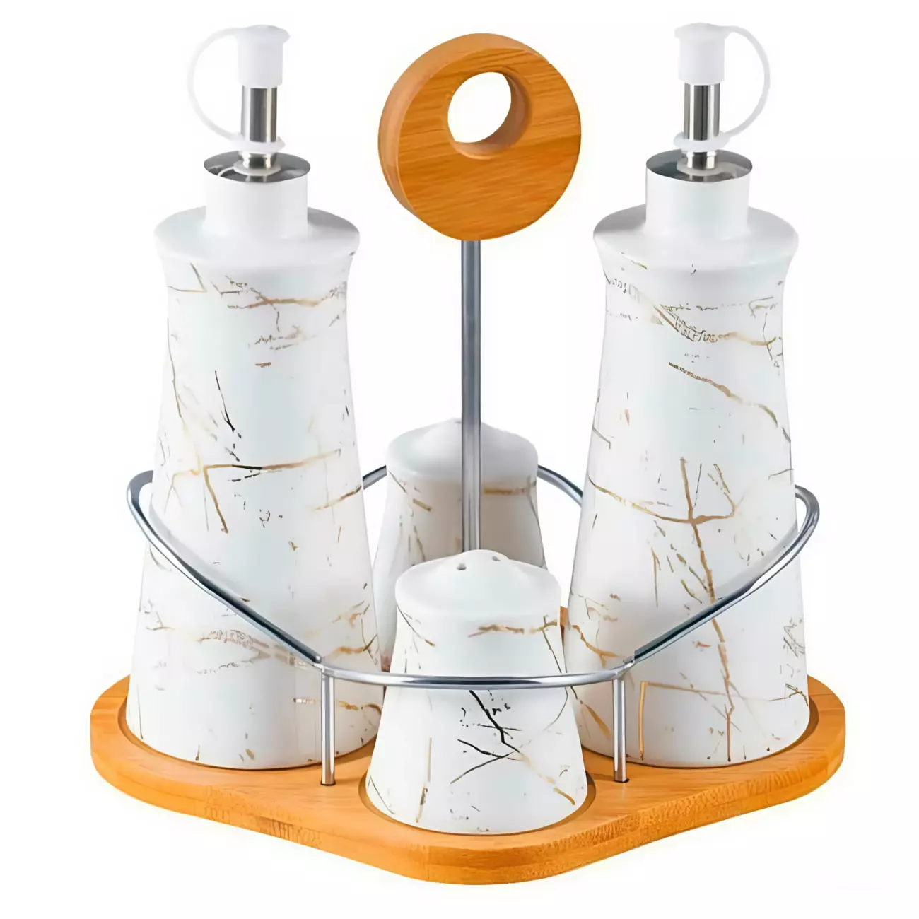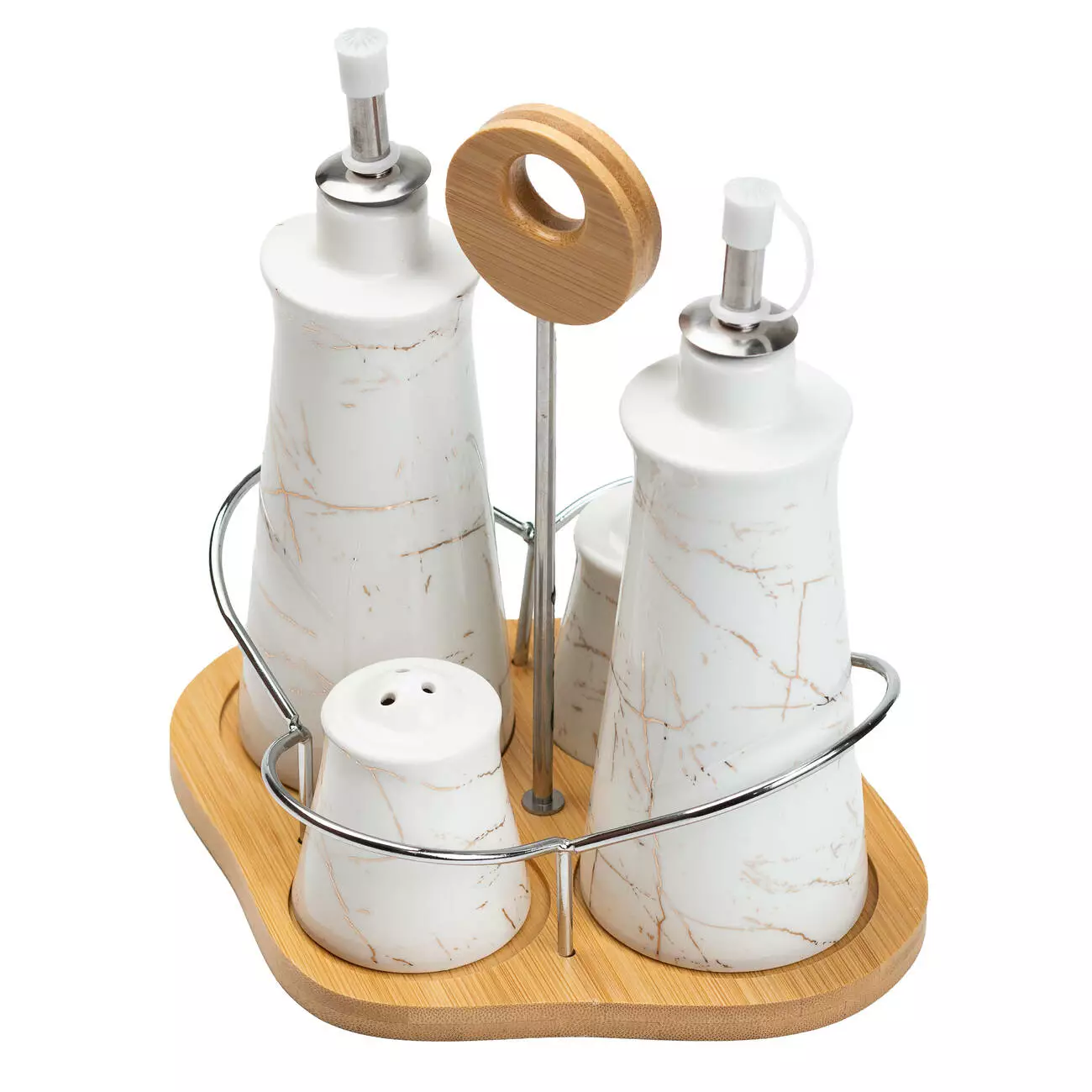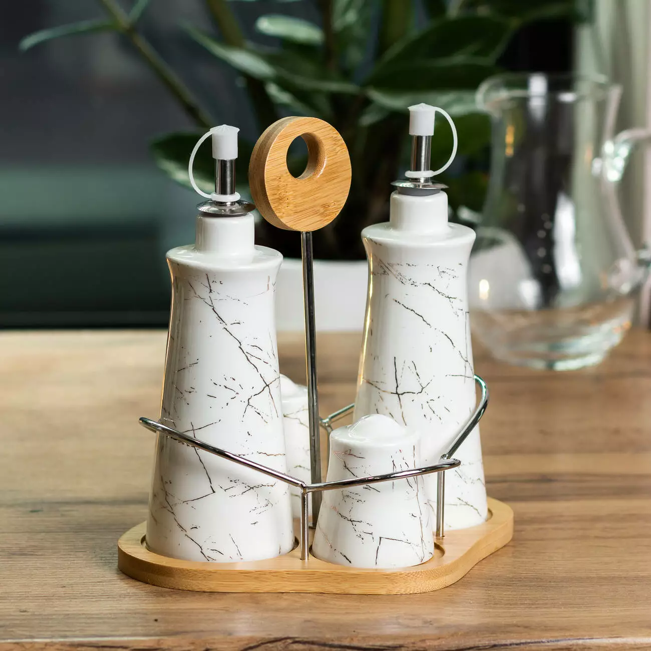 страв. Він складається з двох баночок для спецій та двох пляшок для