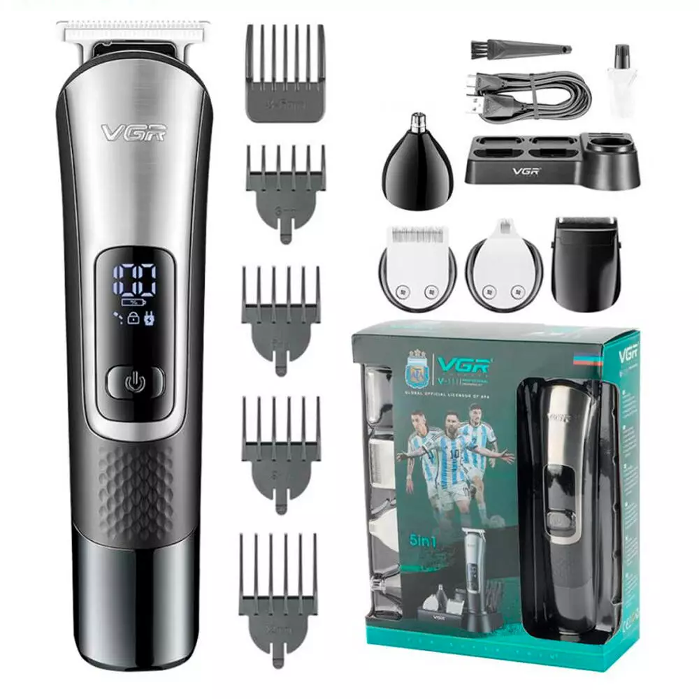 Набір для стрижки VGR 5 в 1 V-111, 9 насадок, LED display, Box