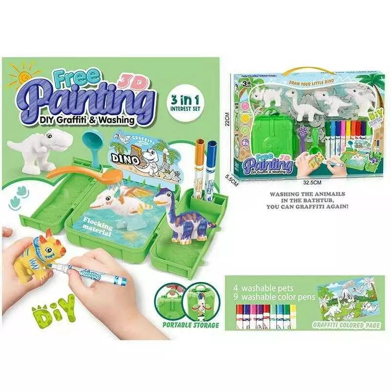 Набір для творчості 833 (48/2) 4 флоксові фігурки тварин, 9 кольорових фломастерів, бокс-ванночка, щіточка, в коробці