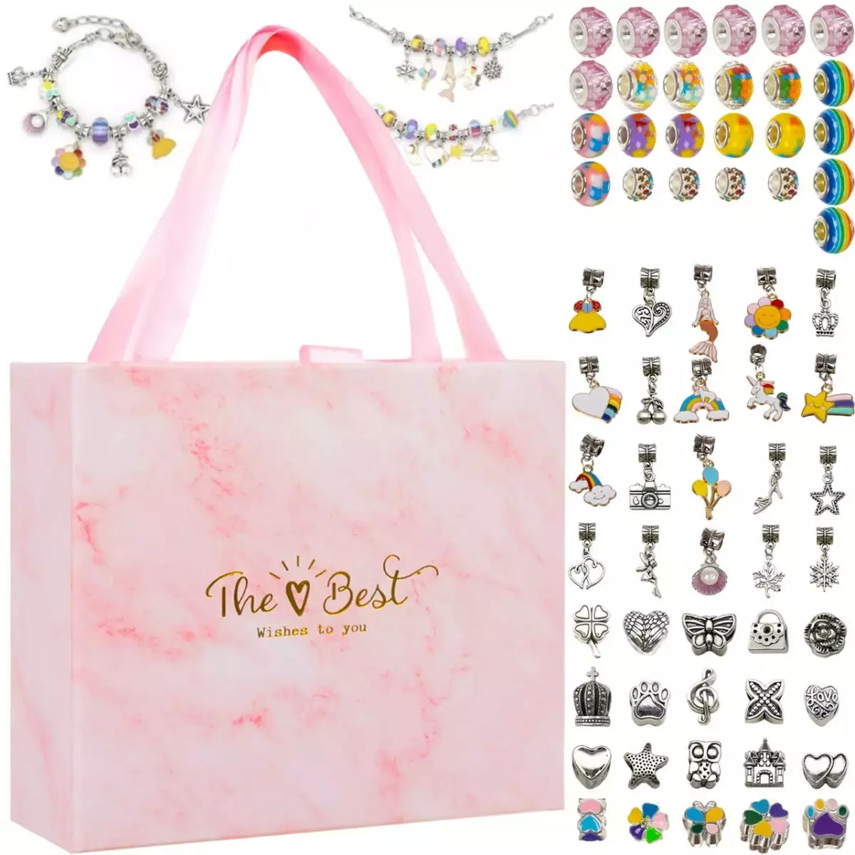 Творчий набір для виготовлення браслетів з підвісками для дівчаток дозволяє дітям насолоджуватися годинами розваг і нескінченними ідеями для створення власних красивих ювелірних браслетів. Дитина може розвивати власну уяву та творчі здібності. Дівчатка можуть створювати будь-які комбінації та конфігурації браслетів "зроби сам".