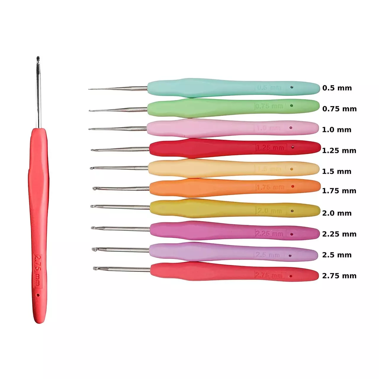 для в'язання від 0,5 мм до 2,75 мм і 10 ергономічних гачків від 3,5